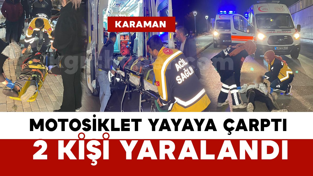 Kaza, akşam saatlerinde Hamidiye Mahallesi İbrahim Öktem Bulvarı üzerinde meydana geldi. Edinilen bilgiye göre, R.T.Y. (17) idaresindeki 70 A*H 3*0 plakalı motosiklet aniden yola çıktığı ileri sürülen F.Ç. (26)’ye çarptı. Çarpmanın etkisiyle motosiklet sürücüsü ve yaya yaralandı. İhbar üzerine adrese sağlık ve polis ekipleri sevk edildi. Kazada yaralananlar ambulanslarla Karaman Eğitim ve Araştırma Hastanesi’ne kaldırılarak tedavi altına alındı. Kazayla ilgili tahkikat başlatıldı.