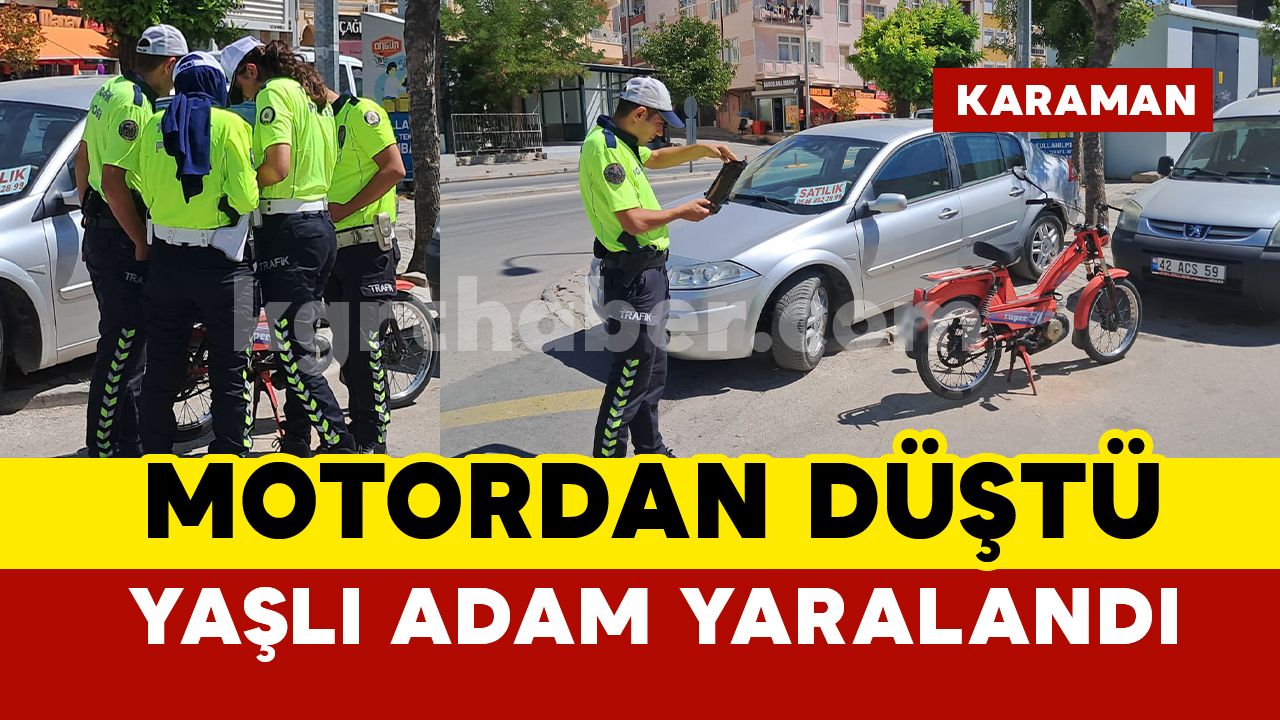 Olay, öğle saatlerinde Kirişçi Mahallesi Zeytin Dalı Bulvarı üzerinde meydana geldi. Edinilen bilgiye göre, sürücüsünün ismi öğrenilemeyen 70 A* 8*3 plakalı motosiklet sürücüsünün direksiyon hakimiyetini kaybetmesi sonucu kontrolden çıkarak devrildi. Motosikletten düşen yaşlı adam yaralandı. İhbar üzerine adrese sağlık ve polis ekibi sevk edildi. Yaralı yaşlı adam ambulansla Karaman Eğitim ve Araştırma Hastanesi’ne kaldırılarak tedavi altına alındı.