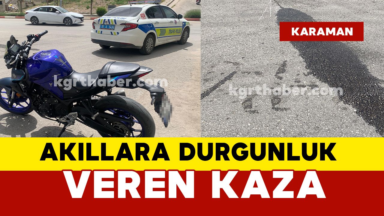 Kaza, öğle saatlerinde İbrahim Hakkı Konyalı Mahallesi Profesör Doktor Ahmet Zeki Velidi Togan Bulvarı üzerinde meydana geldi. Edinilen bilgiye göre, K.B.(22) idaresindeki 48 APK 911 plakalı motosikletten biranda yola yağ akmaya başladı. Yağın akmasından dolayı kayganlaşan yolda motosiklet sürücüsü direksiyon hakimiyetini kaybetti. Kayan motosiklet devrilerek yaklaşık 40 metre sürüklenerek durabildi. Kazada motosiklet sürücüsü K.B. yaralandı. İhbar üzerine olay yerine sağlık ve polis ekipleri sevk edildi. Kazada yaralanan motosiklet sürücüsü ambulansla Karaman Eğitim ve Araştırma Hastanesi’ne kaldırılarak tedavi altına alındı. Kazayla ilgili tahkikat başlatıldı.