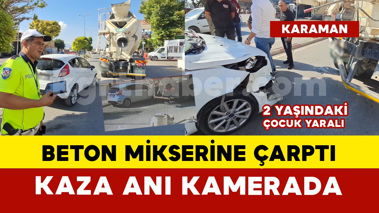 Kaza, ikindi saatlerinde Hamidiye Mahallesi Ahi Evran Bulvarı üzerinde meydana geldi. Edinilen bilgiye göre, T.Ç. idaresindeki 70 A*L 3*9 plakalı Ford marka otomobil, sağa dönüş yapmak için sinyal veren R.Ş. yönetimindeki 70 B* 0*4 plakalı beton mikserine arkadan çarptı. Beton mikserinin arkasındaki demire çarpan otomobil bir süre sonra geri manevra yaparak kaldırıma çıktı. O anlar ise bir iş yerinin güvenlik kamerasına anbean yansıdı. Kazada otomobilde bulunan N.T.(2) isimli çocuk hafif şekilde yaralandı. İhbar üzerine kaza yerine sağlık ve polis ekipleri sevk edildi. Kazada yaralanan çocuk tedbir amacıyla ambulansla Karaman Eğitim ve Araştırma Hastanesi’ne kaldırılarak tedavi altına alındı. Kazayla ilgili tahkikat başlatıldı.