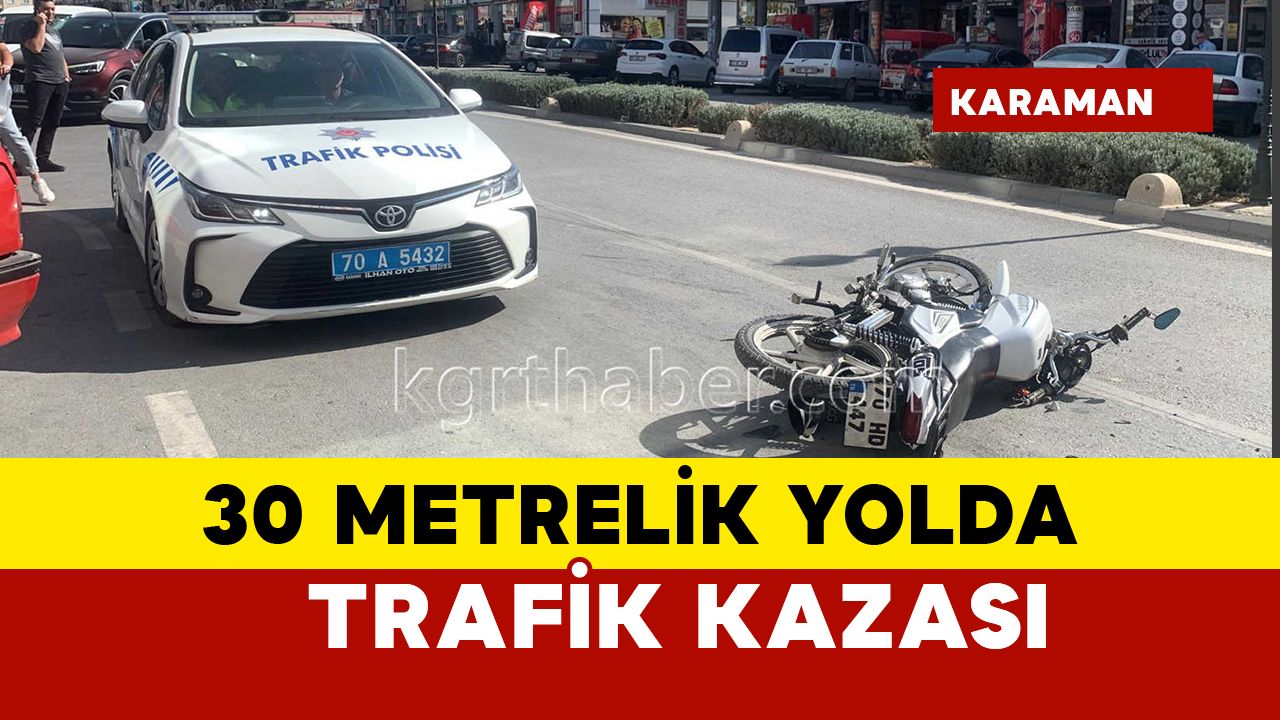 Olay, 30 metrelik yol olarak bilinen Atatürk Bulvarı’nda meydana geldi. Edinilen bilgiye göre M.Ç. İdaresindeki 70 HD 447 plakalı motosiklet ile henüz plakası ve sürücüsü öğrenilemeyen otomobil yol ayrımında çarpıştı.