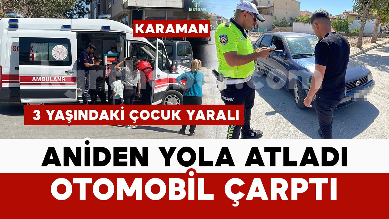Kaza, öğle saatlerinde Yeşilada Mahallesi Şehit Metin Yiğittop Caddesi üzerinde meydana geldi. İddiaya göre, aniden yola atlayan B.S. (3) isimli yabancı uyruklu olduğu öğrenilen erkek çocuğuna İ.Ü. (27) idaresindeki 70 A*Z 5*6 plakalı Volkswagen marka otomobil çarptı. Çarpmanın etkisiyle savrulan çocuk yere düşerek yaralandı. İhbar üzerine kaza yerine sağlık ve polis ekipleri sevk edildi. Kazada yaralanan çocuk ambulansla Karaman Eğitim ve Araştırma Hastanesi’ne kaldırılarak tedavi altına alındı. Kazayla ilgili tahkikat başlatıldı.