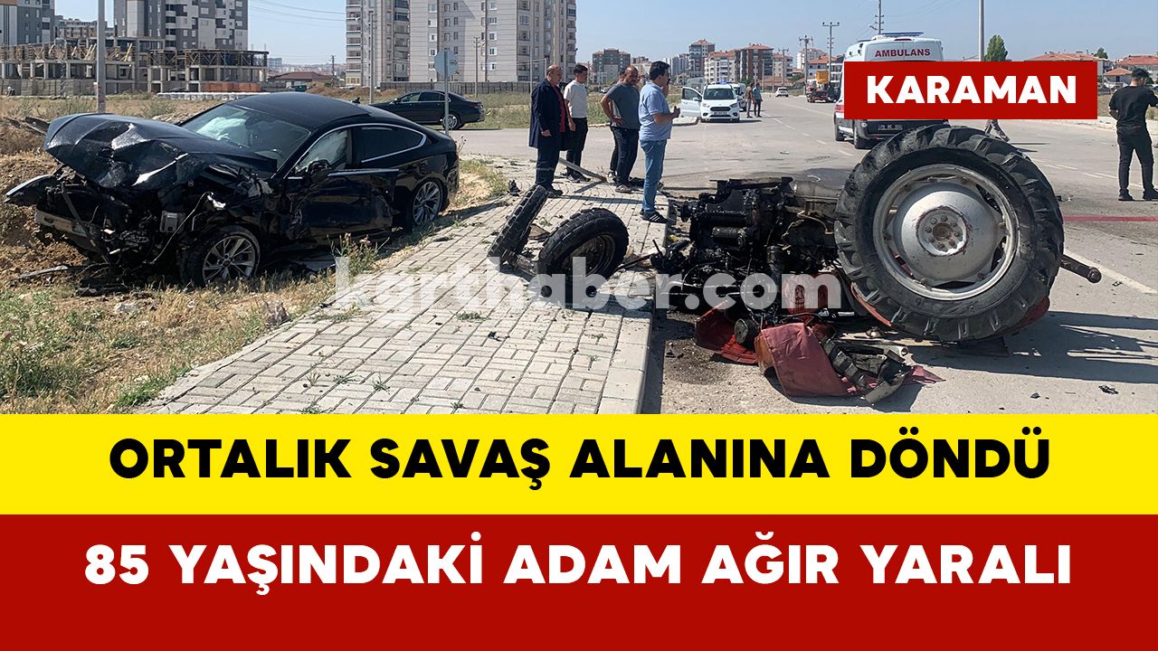Kaza, sabah saatlerinde Yenişehir Mahallesi Alsancak Caddesi üzerinde meydana geldi. Edinilen bilgiye göre, M.E. idaresindeki 70 G* 007* plakalı Audi marka otomobille Z.A. yönetimindeki 70 F* 35* plakalı traktör çarpıştı. Çarpışmanın etkisiyle traktör devrilerek paramparça olurken, otomobil ise trafik levhasına çarparak yoldan çıktı. Kazada traktör sürücüsü ağır yaralandı. İhbar üzerine olay yerine itfaiye, sağlık ve polis ekipleri sevk edildi. Kazada yaralanan traktör sürücüsü ambulansla Karaman Eğitim ve Araştırma Hastanesi’ne kaldırılarak tedavi altına alındı ve durumunun kritik olduğu bilgi edinildi. Kazayla ilgili tahkikat başlatıldı.