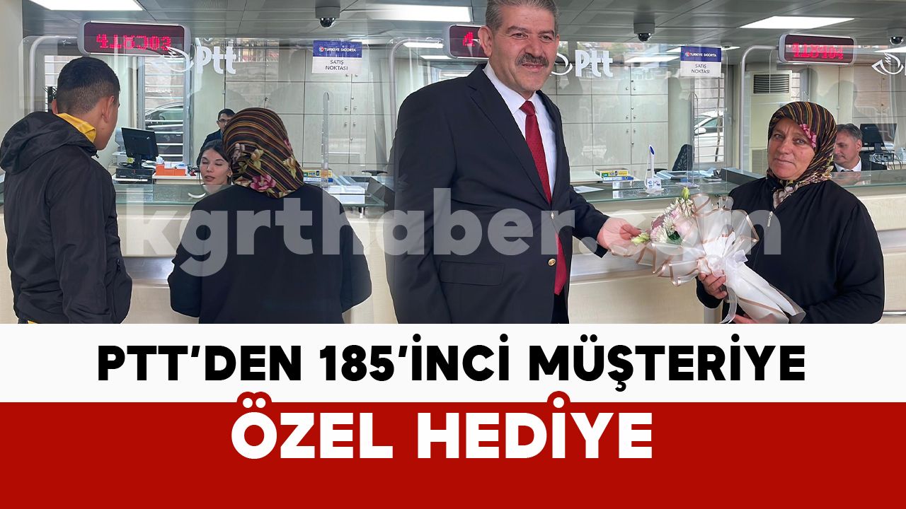 23 Ekim 1840 tarihinde kurulan Ulaştırma ve Altyapı Bakanlığına bağlı olarak faaliyetlerine devam eden PTT’nin 185. yılı dolayısıyla Karaman’da 185’inci müşteriye hediye takdim edildi. PTT Karaman Başmüdürü Faik Göksuçukur, 185. müşteri olarak işlem yapan 53 yaşındaki Gülsüm Atik’e çeşitli hediyeler verdi. Torununun burs parası işlemleri için PTT şubesine geldiğini belirten Atik, kendisine yapılan jest karşısında memnun olduğunu söyledi.