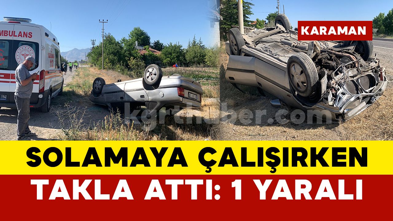 Kaza, ikindi saatlerinde Larende Mahallesi Kılbasan Yolu üzerinde meydana geldi. Edinilen bilgiye göre, Ö.K. (21) idaresindeki 42 CR* 6* plakalı Opel marka otomobil, Ş.D. yönetimindeki 06 BK* 73* plakalı BMW marka otomobili sollamaya çalıştığı esnada sürücüsünün direksiyon hakimiyetini kaybetmesi sonucu kontrolden çıkarak şarampole takla attı. Kazada otomobil sürücüsü yaralandı. Kazayı gören çevredeki vatandaşlar hemen kaza yapan aracın yanına gelerek yaralıyı araçtan çıkarttı. İhbar üzerine olay yerine sağlık ve polis ekipleri sevk edildi. Kazada yaralanan otomobil sürücüsü ambulansla Karaman Eğitim ve Araştırma Hastanesi’ne kaldırılarak tedavi altına alındı. Kaza anını anlatan vatandaşlar, arkadaki aracın sollamaya çıktığını, hemen ardından öndeki aracın da sollamaya çalışmasıyla arkadaki aracın kontrolden çıkarak takla attığını ileri sürdü. Kazaya karışan aracın çekiciyle kaldırılması için polis ekiplerince yol iki yönlü olarak bir süreliğine trafiğe kapatıldı. Kazaya karışan aracın çekiciyle kaldırılması sonrasında yol yeniden ulaşıma açıldı. Kazayla ilgili tahkikat başlatıldı.