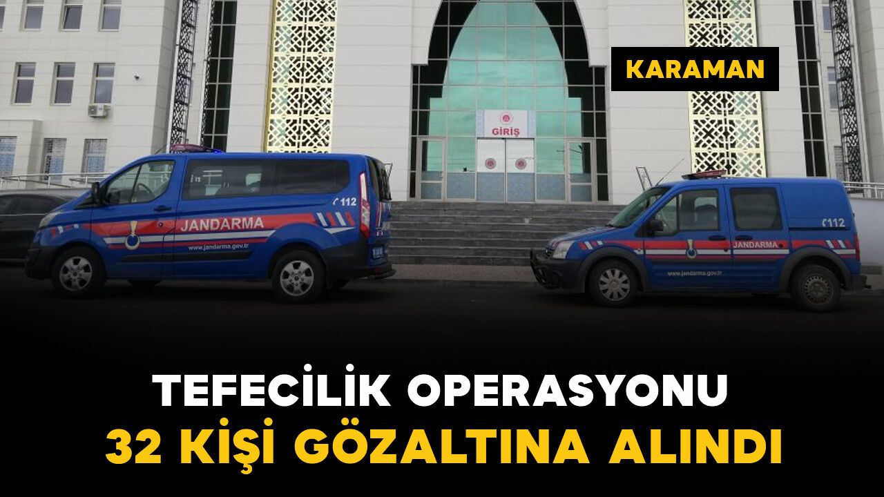 Edinilen bilgiye göre, Karaman Cumhuriyet Başsavcılığı koordinesinde İl Jandarma Komutanlığı ekipleri tarafından tefecilik ve suçtan kaynaklanan mal varlığı değerlerinin aklanması suçlarına karıştığı öne sürülen kişilere yönelik şafak operasyonu düzenlendi. Bu kapsamda belirlenen adreslere eş zamanlı düzenlenen operasyonda 7'si kadın 32 kişi yakalanarak gözaltına alındı. Adreslerinde bulunamayan 7 kişinin yakalanmasına yönelik ise çalışma başlatıldı. Şüpheliler, Karaman Eğitim ve Araştırma Hastanesi'nde sağlık kontrolünden geçirildikten sonra sorgulanmak üzere il jandarma komutanlığına götürüldü.