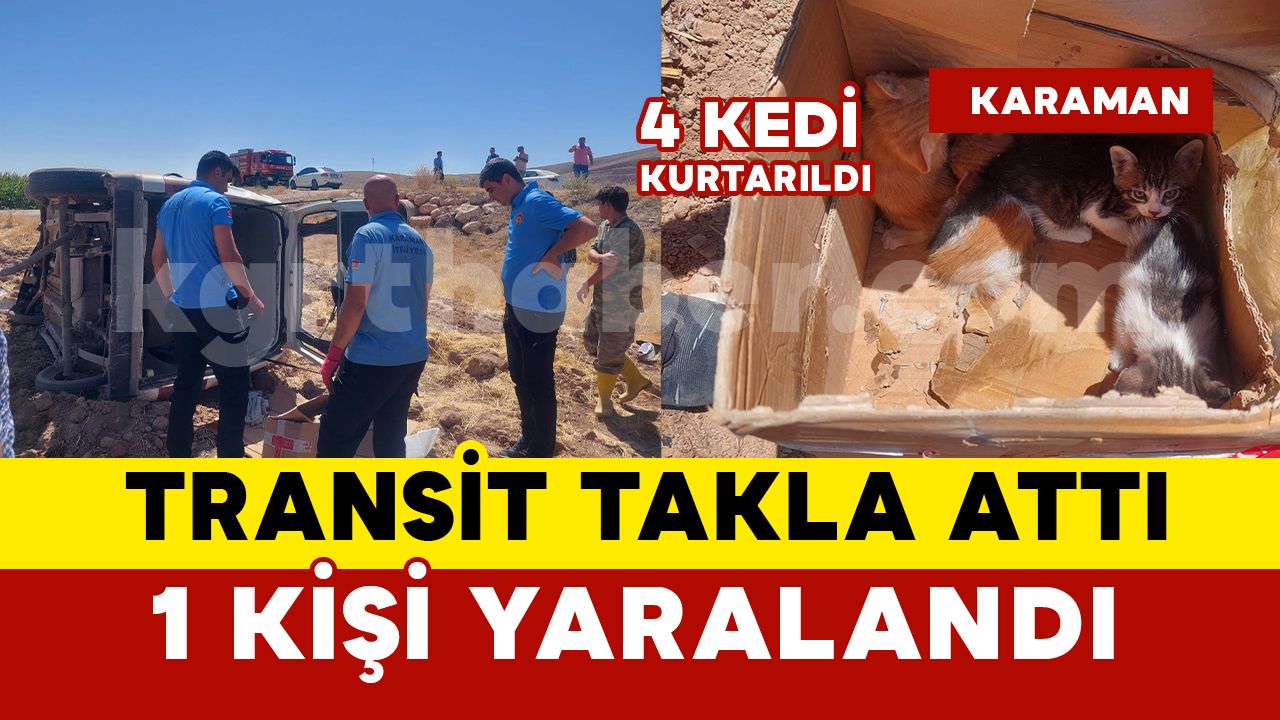 Edinilen bilgiye göre, 42 B*L 9* plakalı transit araç sürücüsünün direksiyon hakimiyetini kaybetmesi sonucu tarlaya takla attı. Kazayı gören vatandaşlar, araçtaki yaralıyı kendi imkânlarıyla çıkararak sağlık ekiplerine teslim etti. İhbar üzerine olay yerine itfaiye ve sağlık ekipleri sevk edildi. Yaralı, ambulansla Karaman Eğitim ve Araştırma Hastanesi’ne kaldırılarak tedavi altına alındı.