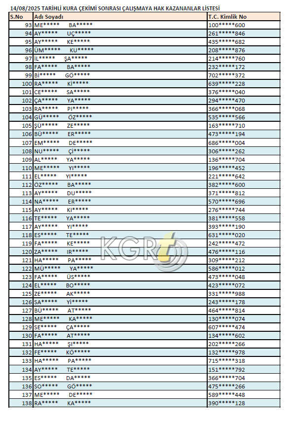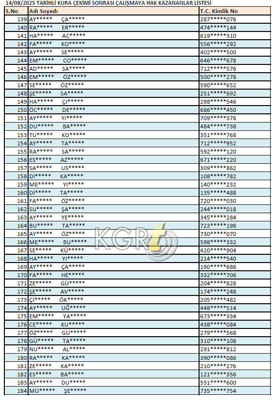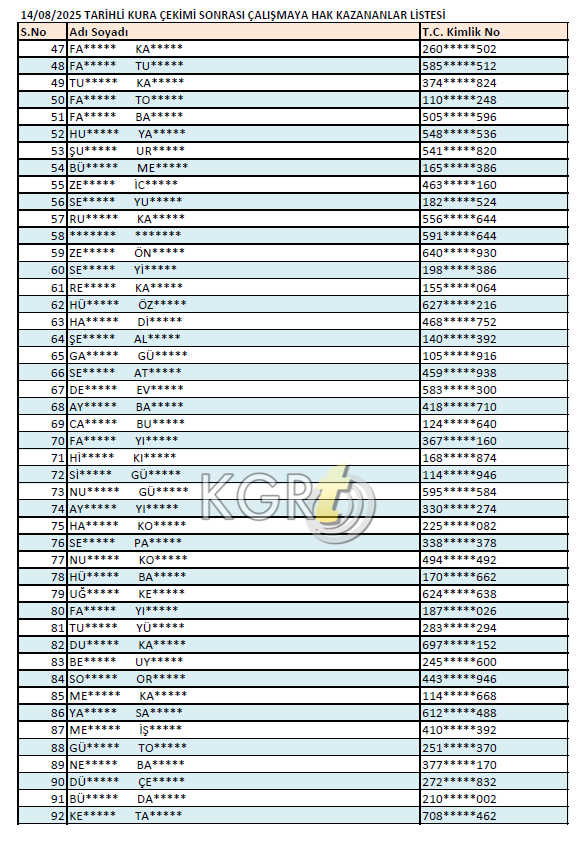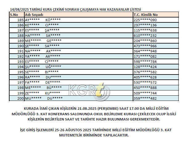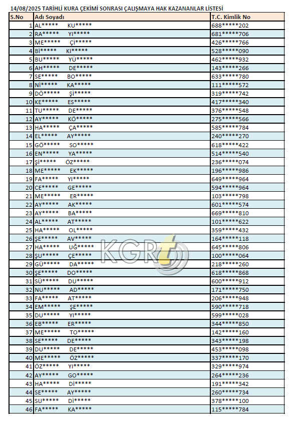 Karaman'da işe başlayacak olan personel listesi ilk kez kgrthaber.com'da ve şu şekilde;