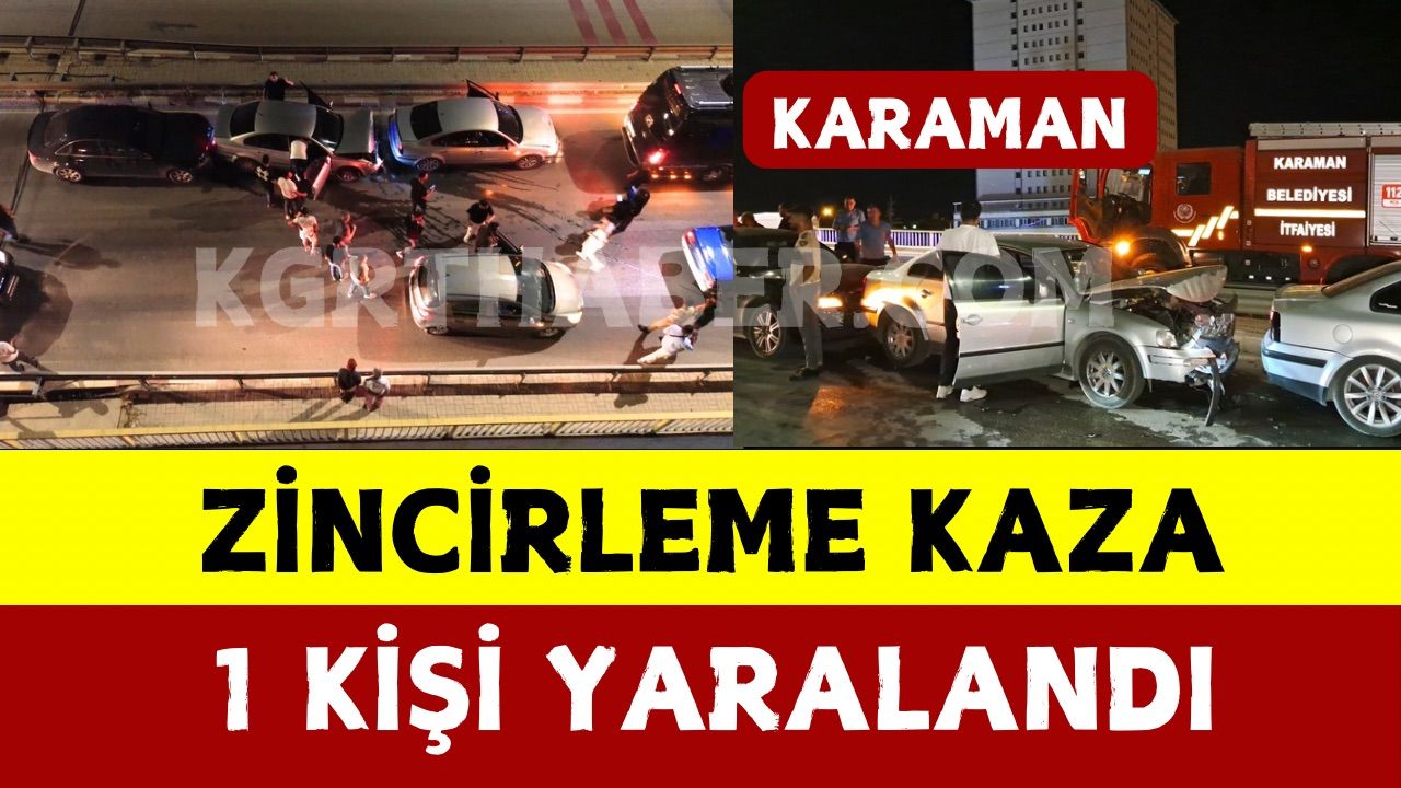 Kaza, gece saatlerinde Hamidiye Mahallesi İbrahim Öktem Caddesi üzerinde bulunan üst geçitte meydana geldi. Edinilen bilgiye göre, üst geçit üzerinde 3 otomobil ve 1 minibüsün karıştığı zincirleme kaza meydana geldi. Kazada 70 F* 1*0 plakalı Volkswagen marka otomobildeki L.B.S. yaralandı. İhbar üzerine kaza yerine sağlık ve polis ekipleri sevk edildi. Kazada yaralanan L.B.S. ambulansla Karaman Eğitim ve Araştırma Hastanesi’ne kaldırılarak tedavi altına alındı. Kaza sebebiyle üst geçit bir süreliğine trafiğe kapatıldı.Kazayla ilgili tahkikat başlatıldı.