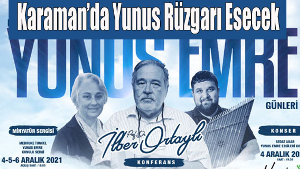 Karaman Tanıtım Platformu tarafından düzenlenen Karaman Uluslararası Yunus Emre Günleri, Karamanoğlu Mehmetbey Üniversitesi 15 Temmuz Konferans Salonunda Bifa Bisküvi, Duru Bulgur, Modern Çikolata, Saray Holding ve Nova İnşaat’ın katkılarıyla gerçekleşecek olan programda ünlü Türk Tarihçisi Prof. Dr. İlber Ortaylı tarafından Yunus Emre Tarihi konulu bir konferans düzenlenecek. Programın ilk günü olan 04 Aralık 2021 Cumartesi günü saat 19’da Karamanlı olup İstanbul’da ikamet eden İstanbul Eğitim Kültür Vakfı üyesi ünlü ressam Mebruke Tuncel tarafından “Yunus Emre” Minyatür Sergisi açılacak.