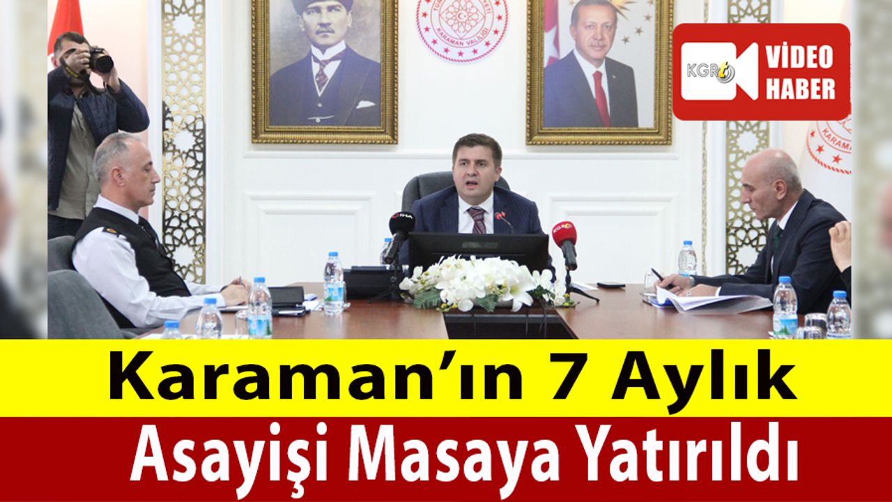 Karaman merkez ve ilçelerde 7 aylık süreçte yapılan çalışmaların masaya yatırıldığı toplantıda asayişten, narkotiğe, kaçakçılıktan, siber suçlara trafikten, toplum destekli hizmete pekçok konu başlığı rakamlarla kamuoyu ile paylaşıldı.