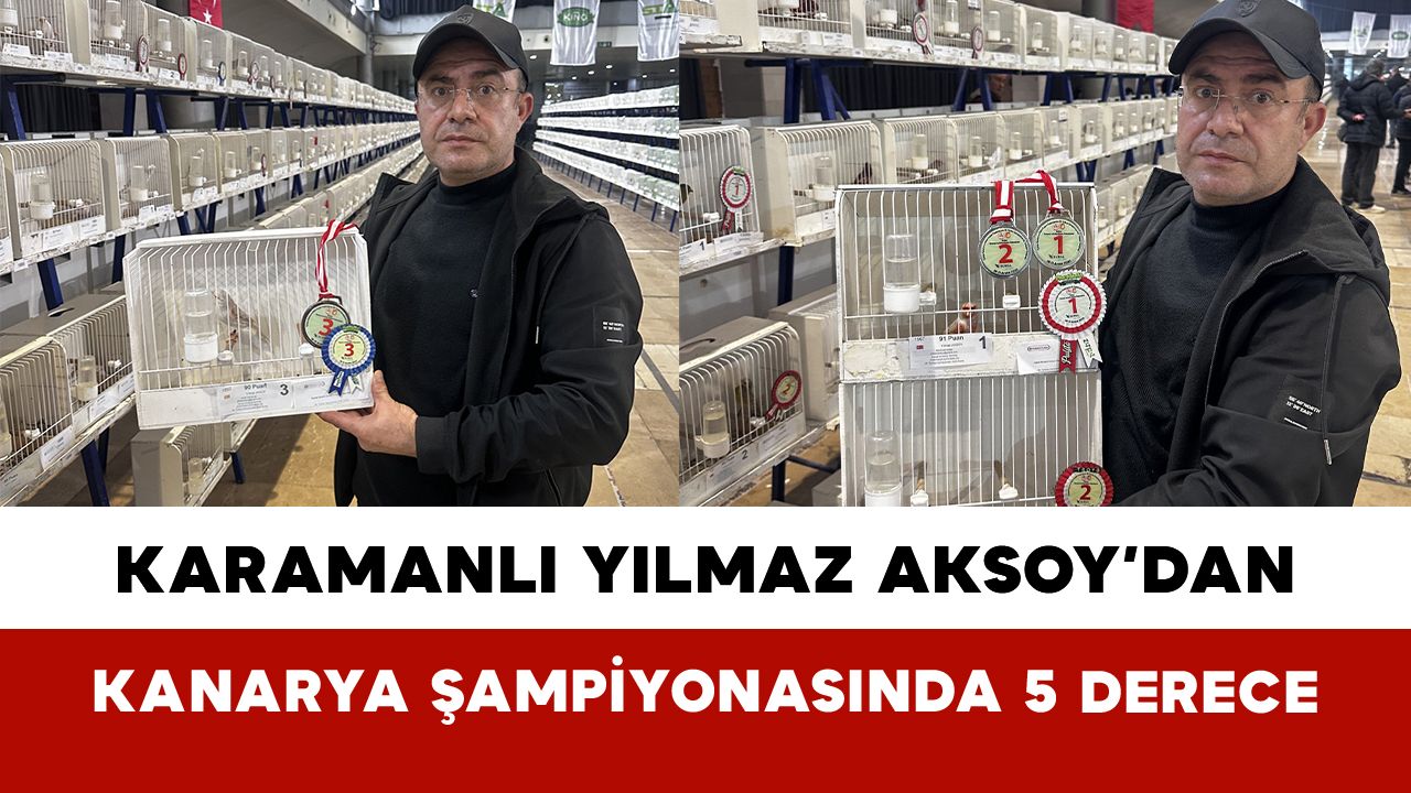 Her yıl büyük heyecana sahne olan şampiyonada Karamanlı yetiştirici Yılmaz Aksoy, elde ettiği derecelerle dikkatleri üzerine çekti. Yarışmaya 7 kanarya ile katılan Aksoy, jüri değerlendirmeleri sonucunda 5 derece birden kazanarak önemli bir başarıya imza attı.