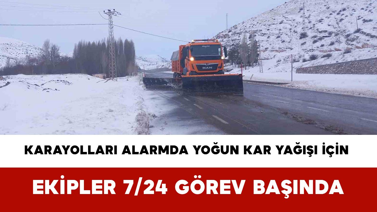Karayolları Genel Müdürlüğü, Meteoroloji’den gelen son veriler doğrultusunda 7 gün 24 saat esasına göre çalışmalarını sürdüreceğini duyurdu.