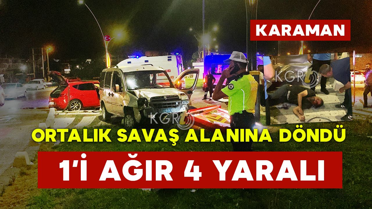 Kaza, gece saatlerinde Osmangazi Mahallesi İbrahim Öktem Bulvarı üzerindeki kavşakta meydana geldi. Edinilen bilgiye göre, M.Ç. (47) idaresindeki 70 AAT 949 plakalı Fiat marka hafif ticari araç ile C.Y. (20) yönetimindeki 42 FT 743 plakalı Seat marka otomobil kavşakta çarpıştı. Çarpışmanın etkisiyle hafif ticari araç savrularak orta refüje çıktı ve tabelaları devirdi. Kazada hafif ticari aracın sürücüsü M.Ç. (47) ağır yaralanırken, Seat marka otomobilin sürücüsü C.Y. (20) ve araçta bulunan 2 kişi yaralandı. İhbar üzerine olay yerine sağlık, itfaiye ve polis ekibi sevk edildi. Kazada yaralananlar sağlık ekibinin olay yeri müdahalesi sonrasında ambulanslarla Karaman Eğitim ve Araştırma Hastanesi’ne kaldırılarak tedavi altına alındı. Kazaya karışan araçlar çekici ile bulundukları yerden kaldırıldı. Kazayla ilgili tahkikat başlatıldı.