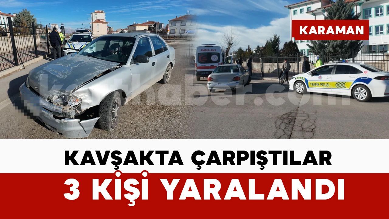 Kaza, sabah saatlerinde Sümer Mahallesi Ahmet Öktem Caddesi üzerinde bulunan kavşakta meydana geldi. Edinilen bilgiye göre, K.I. idaresindeki 70 F* 0*4 plakalı Hyundai marka otomobil ile A.G. yönetimindeki 70 A*D 9*9 plakalı Chery marka cip çarpıştı. Kazada otomobil sürücüsü K.I. ve araçta yolcu olarak bulunan eşi N.I. ile cip sürücüsü A.G. yaralandı. İhbar üzerine olay yerine sağlık ve polis ekipleri sevk edildi. Yaralılar, olay yerinde yapılan ilk müdahalelerinin ardından ambulanslarla Karaman Eğitim ve Araştırma Hastanesi’ne kaldırılarak tedavi altına alındı.