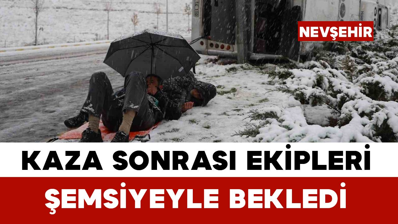 Yaralılar olay yerindeki ilk müdahalelerinin ardından ambulanslarla hastaneye götürülürken, yaralılardan birisi de sağlık ekiplerinin gelmesini şemsiye ile yatarak bekledi.