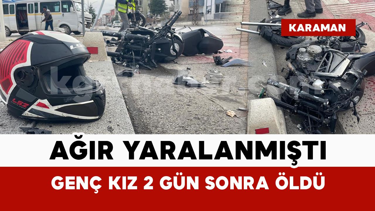 Motosikletin parçalandığı kazada sürücü genç kız ağır yaralandı. İhbar üzerine olay yerine sağlık ve polis ekipleri sevk edildi. Ağır yaralı Ayşe Ünal, olay yerindeki ilk müdahalesinin ardından ambulansla Karaman Eğitim ve Araştırma Hastanesine kaldırıldı. Burada tedavi altına alınan alınan 23 yaşındaki Ünal, doktorların tüm müdahalesine rağmen 2 günlük yaşam savaşını kaybederek hayatını kaybetti. Hastanenin morgunda yapılacak otopsinin ardından genç kızın cenazesinin ailesine teslim edileceği bilgi edinildi. Kazayla ilgili tahkikat sürüyor.
