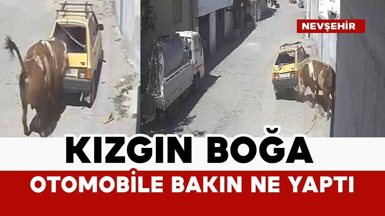 Olay, Avanos ilçesine bağlı Özkonak beldesinde yaşandı. Bir ahırda bağlı bulunan boğa, zincirinden kurtularak ahırdan kaçtı. Bir süre kasaba içinde dolaşan ve sahibi tarafından yakalanmak için kovalanan boğa çevrede paniğe neden oldu. Uzun süre kovalanan boğa, cadde üzerinde park halinde bulunan bir otomobile zarar verdi. Defalarca otomobile vuran boğa, sahipleri tarafından uyuşturucu iğne ile etkisiz hale getirildi. Taşınması mümkün olmayan boğa yakalandığı yerde kesildi.