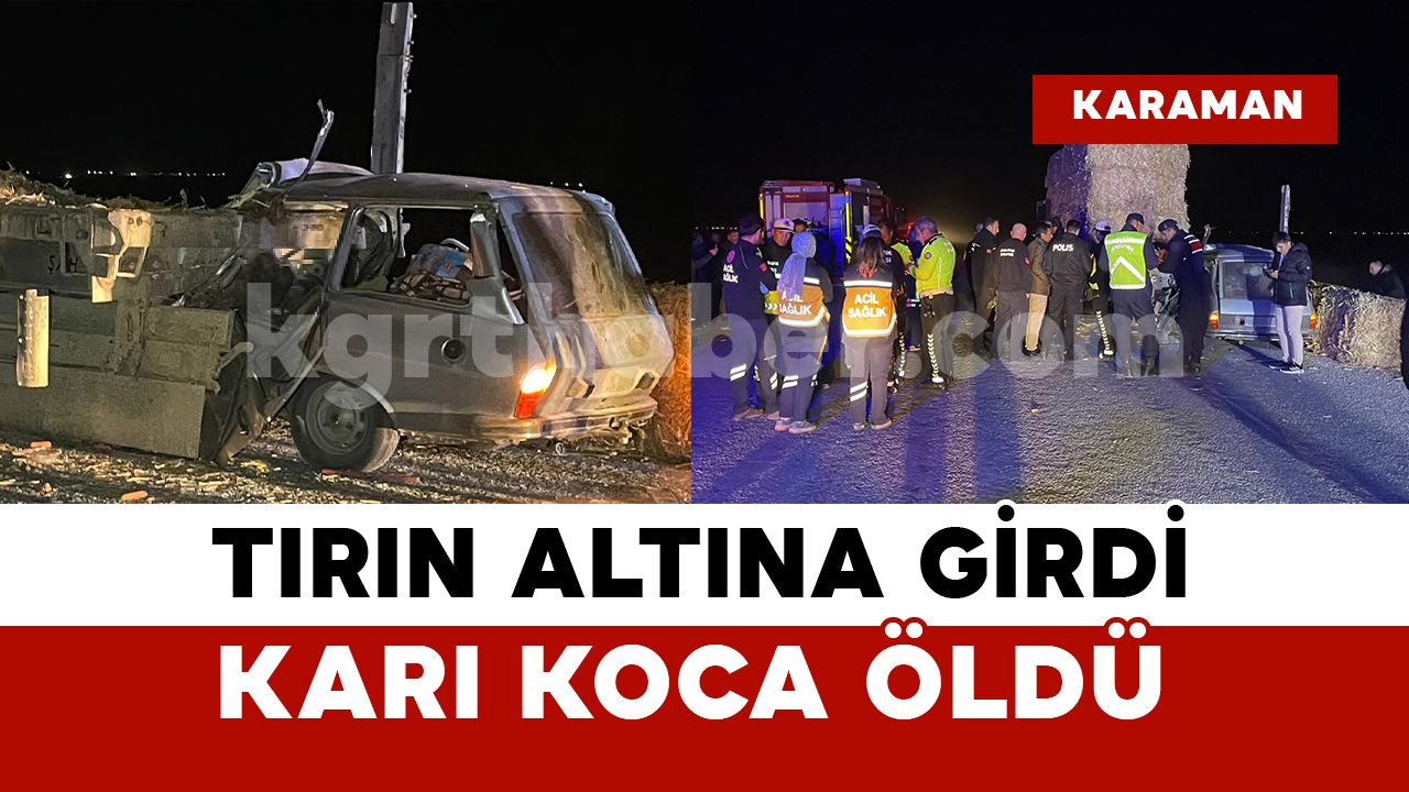 Kaza akşam saatlerinde Karaman Kızık köyü yolu üzerinde meydana geldi. Edinilen bilgiye göre, Orhan Şahin (52) yönetimindeki 70 E* 3*9 plakalı otomobil, arızalanan park halindeki İsa Ç.’ye ait 63 A*V 8*1 plakalı saman balyası yüklü tıra arkadan çarptı. Otomobil çarpmanın etkisiyle tırın altına girdi. İhbar üzerine kaza yerine çok sayıda sağlık, itfaiye, polis, jandarma, ekipleri sevk edildi. Kazada otomobil sürücüsü ve İran uyruklu eşi Roya Jigari olay yerinde hayatını kaybetti. Ekiplerin incelemesinin ardından hayatını kaybeden çiftin cenazeleri Karaman Eğitim ve Araştırma Hastanesi morguna kaldırıldı. Kazayla ilgili tahkikat başlatıldı.