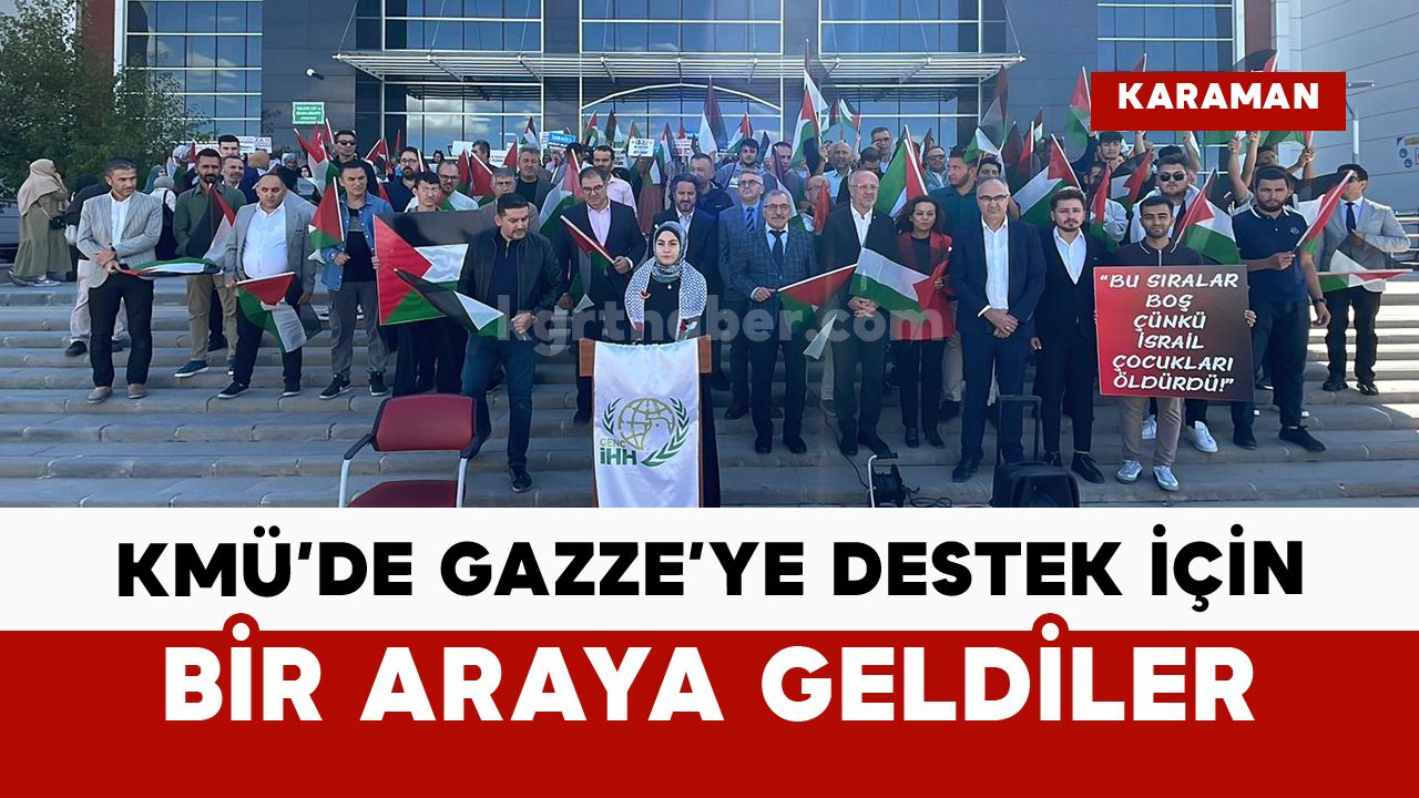 Rektör Gavgalı’nın konuşmasının ardından KMÜ Türkçe Öğretmenliği Bölümü 3. sınıf öğrencisi Fatma Büşra Aktaş tarafından basın açıklaması okundu. Yapılan basın açıklamasında, “Filistin’de yıllardır süren işgal ve son dönemde artan saldırılar, büyük bir insani felakete dönüşmüş durumda. Binlerce masum sivil hayatını kaybetti, yüz binlercesi evlerinden edildi. Bu ağır bedeli, hiçbir suçu olmayan çocuklar, kadınlar ve yaşlılar ödüyor. Uluslararası hukuk ve insan hakları ilkeleri, sivillerin korunmasını açıkça emreder. Ne var ki bugün bu temel ilke göz göre göre çiğneniyor; insanlığın ortak vicdanı tarihin en ağır sınavlarından birinden geçiyor.