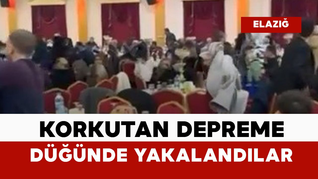 Depremin hissedildiği anlarda, Elazığ’da bir düğün salonunda bulunan vatandaşların yaşadığı panik anları kameralara yansıdı. Görüntülerde, kaydı yapan kişinin bağırarak deprem olduğunu söylemesi, bazı davetlilerin panikle masalarından kalkması dikkat çekerken, bazı vatandaşların ise kısa süreli sarsıntıya rağmen halay çekmeye devam ettiği görüldü.