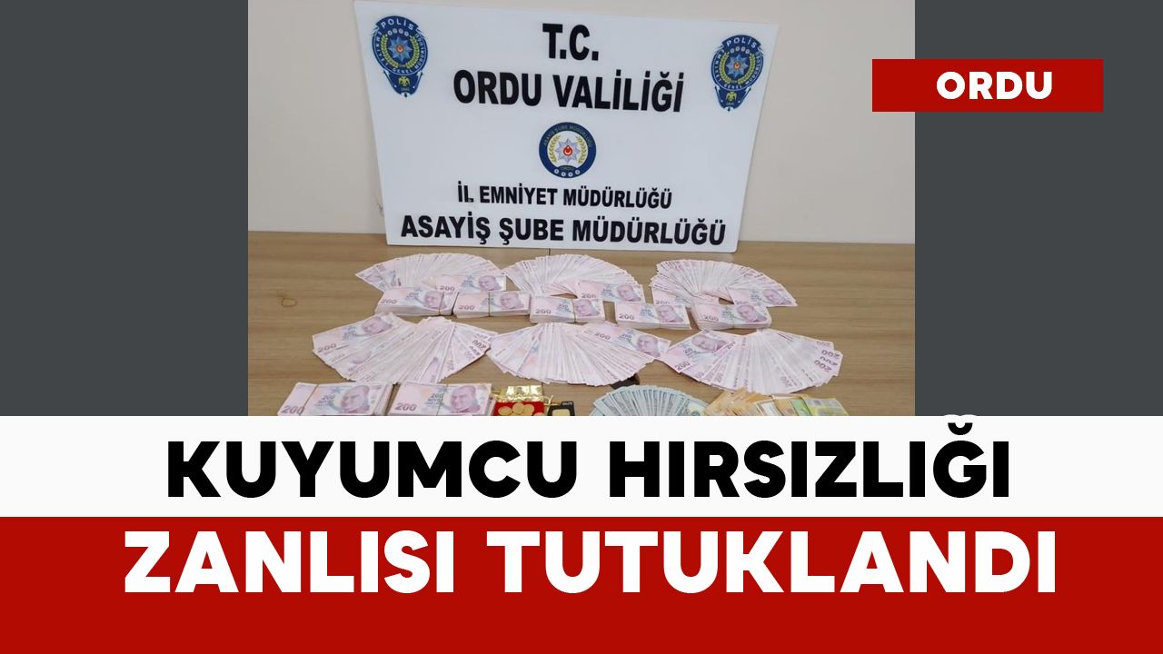 Altınordu ilçesi Şarkiye Mahallesi'nde bulunan Vitrin Kuyumculuk'ta dün akşam saat 17.10'da meydana gelen olayda, piyasa değeri yaklaşık 2 milyon TL olan altınları çalarak kaçan A.Ş. (54) isimli şüpheli, polis ekiplerinin çalışması sonucu Trabzon'un Akçaabat ilçesinde dün gece saatlerinde yakalandı.