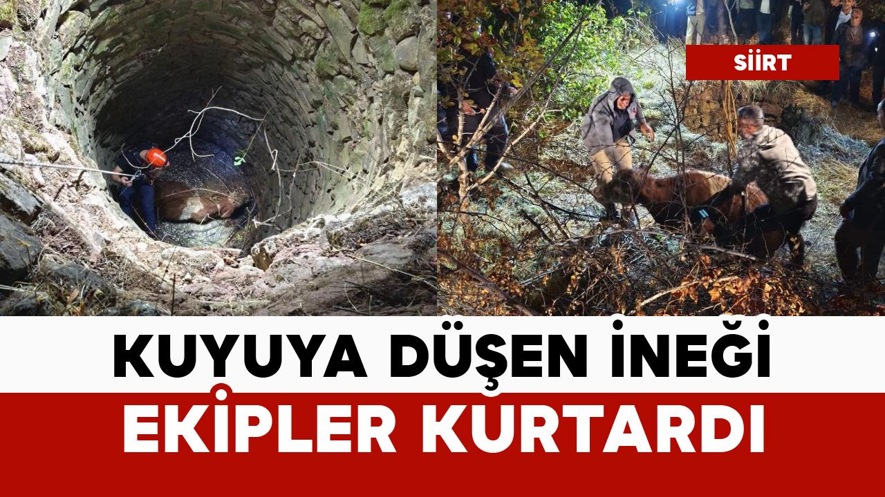 Edinilen bilgilere göre, Baykan ilçesi Dedebakır köyünde yaklaşık 10 metrelik su kuyusuna düşen inek için vatandaşlar tarafından 112 Acil Çağrı Merkezine ihbarda bulunuldu. İhbar üzerine olay yerine AFAD ve itfaiye ekibi sevk edildi. Kuyudan çıkartılan inek, sağlıklı bir şekilde sahibine teslim edildi.