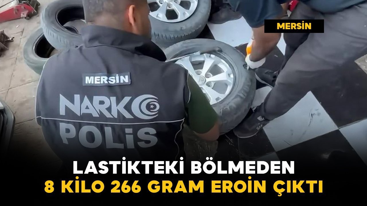 Alınan bilgiye göre, Mersin Cumhuriyet Başsavcılığı koordinesinde İl Emniyet Müdürlüğü Narkotik Suçlarla Mücadele ile İstihbarat Şube Müdürlüklerine bağlı ekipler, uyuşturucu madde ticareti ve sevkiyatının önlenmesine yönelik çalışma yaptı. Yapılan teknik ve fiziki takip sonucu, eroin sevkiyatı yaptığı belirlenen şüpheli K.Ö.'nün kullandığı araç takibe alındı. Polisin takibi sonrasında araç durduruldu, şüpheli ise gözaltına alındı. Araçta narkotik madde arama köpeği Tokyo eşliğinde aramada yapıldı. Köpeğin tepki verdiği aracın lastiklerin içerisine jant üzerine yapılan özel düzenek kesilince toz halinde 8 kilo 266 gram eroin çıktı.
