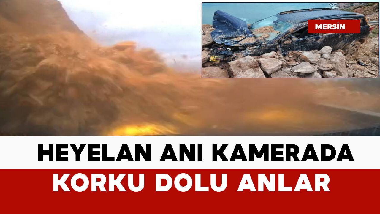Öte yandan heyelan anı, olay sırasında toprak ve kaya parçalarının altında kalan aracın araç kamerasına yansıdı. Görüntülerde, otomobilin bir anda yuvarlanan toprak ve kaya parçalarının altında kaldığı, bu sırada hava yastıklarının açıldığı ve ön camının kırıldığı görüldü.