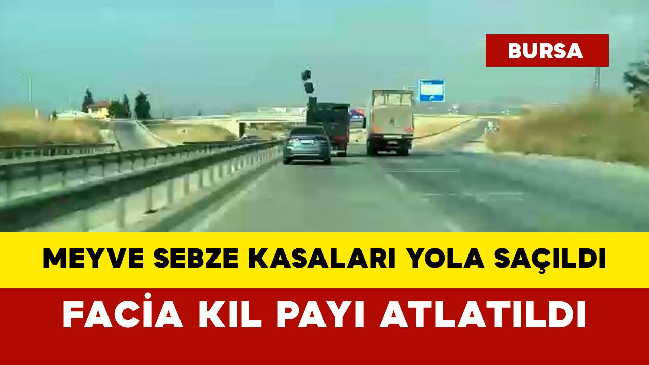 Olay, Bursa-İzmir karayolu Akçalar mevkiinde meydana geldi. Edinilen bilgilere göre, bir kamyon şoförü, kasasına yüklediği boş sebze ve meyve kasalarıyla tarlaya gitmek üzere yola çıktı. Ana yolda ilerleyen kamyon, sürücüsünün hızını artırmasıyla birlikte araca düzgün şekilde sabitlenmeyen plastik kasalar yola savrulmaya başladı.