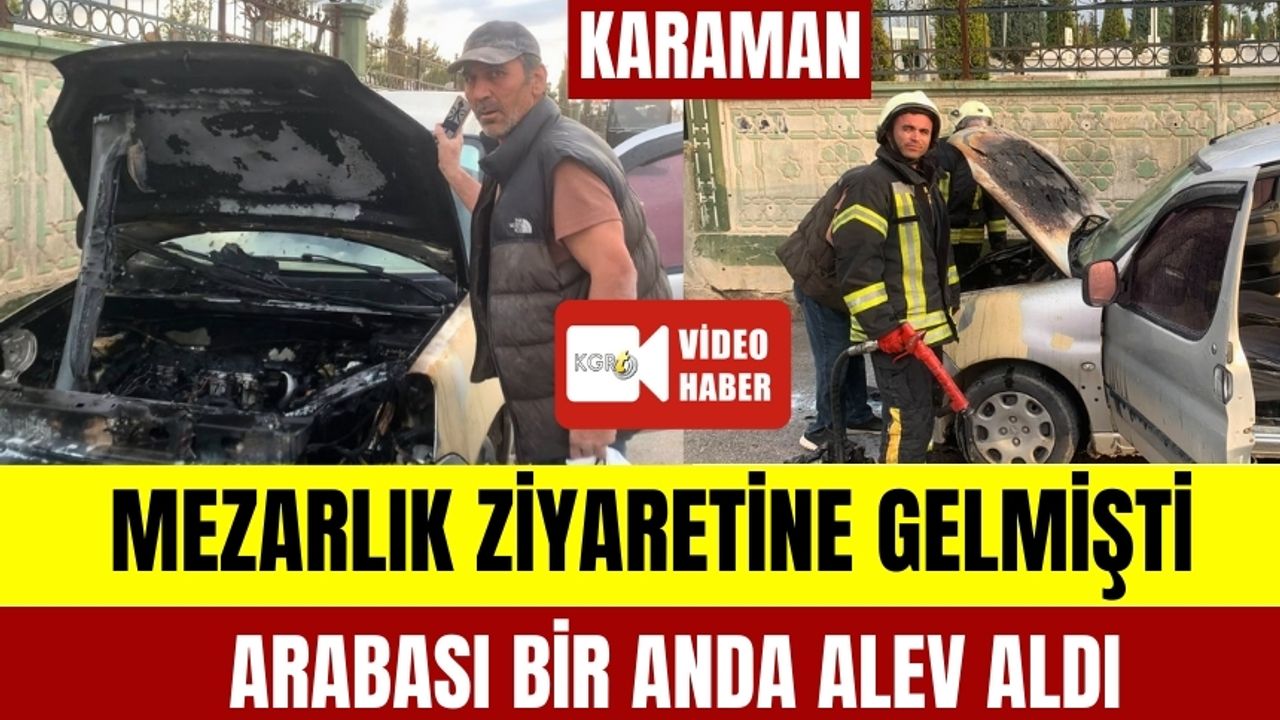 Karaman’da Hamidiye Mahallesi’nde 18.20 sıralarında meydana gelen olayda edinilen bilgiye göre, B.Ç. isimli sürücü aracıyla 703. Sokağa geldi ve aracını park ederek mezarlık ziyareti için mezarlığa girdi. Araç park edildikten kısa süre sonra bir anda alevlere teslim oldu. Durumu gören polis ekipleri araca yangın tüpüyle müdahale ederken durum itfaiye ekiplerine bildirildi. Mezarlık ziyaretine gelen adam dumanları görünce bir anda aracının yanına koştu. İhbar üzerine olay yerine gelen itfaiye ekipleri yangını kontrol altına aldı. Aracını park eden ve mezarlık ziyaretine geldiğini söyleyen B.Ç. isimli sürücü: “Çocuğa dua edeyim diye mezarlığa gelmiştim. Arabayı park edeli 5 dakika olmadı bu olay yaşandı. Olayı yoldan geçenler görmüş zaten.” dedi. Polis olayla ilgili inceleme başlattı.