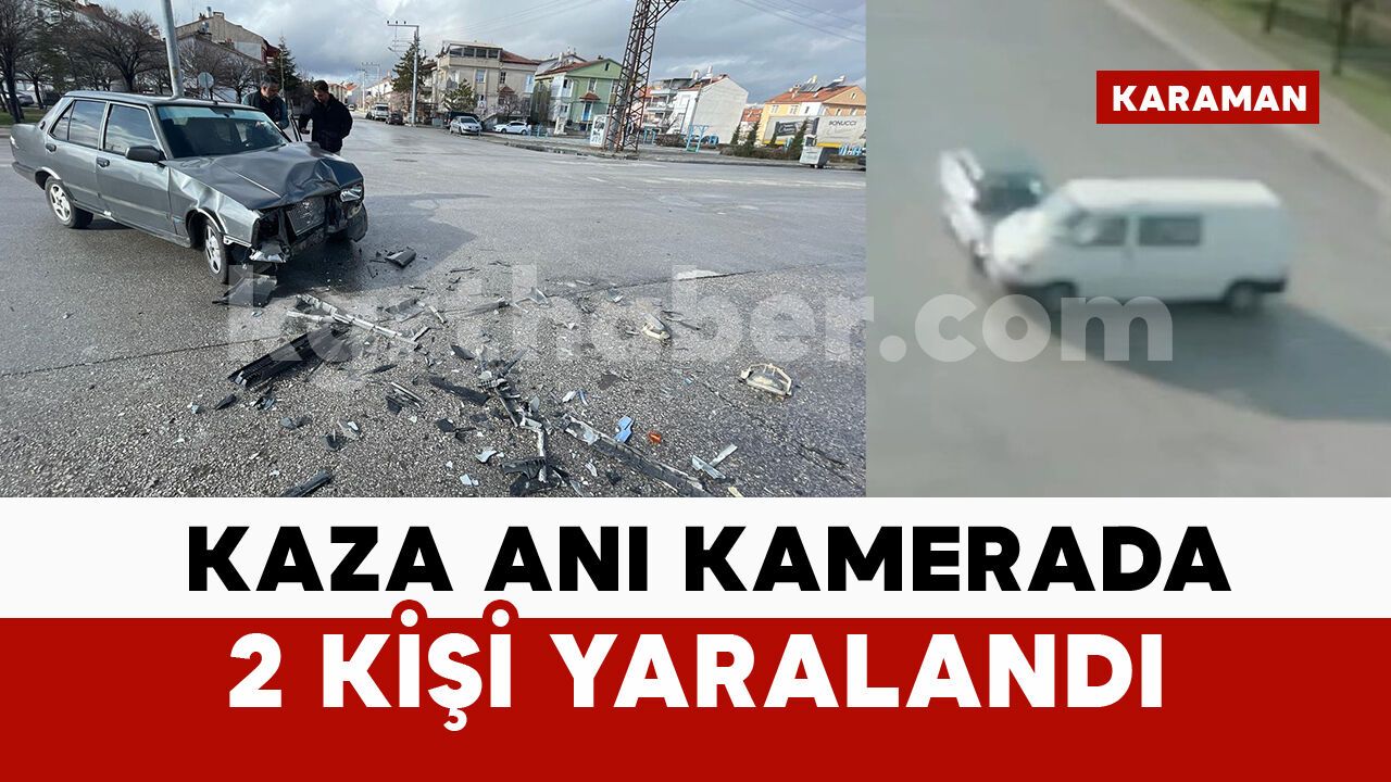 Kaza, sabah saat 08.30 sıralarında Mümine Hatun Mahallesi Peyami Safa Caddesi üzerinde bulunan kavşakta meydana geldi. Edinilen bilgiye göre, Ü.Ç. idaresindeki 33 U* 3*1 plakalı Tofaş marka otomobil ile A.D. yönetimindeki 42 A*N 2* plakalı minibüs kavşakta çarpıştı. Kazada otomobil sürücüsü Ü.Ç. ile araçta yolcu olarak bulunan 1 kişi yaralandı. İhbar üzerine olay yerine sağlık ve polis ekipleri sevk edildi. Yaralılar, ambulanslarla kaldırıldıkları Karaman Eğitim ve Araştırma Hastanesi’nde tedavi altına alındı. Yaralıların sağlık durumlarının iyi olduğu öğrenildi. Kaza anı ise güvenlik kamerasına anbean yansıdı. Güvenlik kamerasına yansıyan görüntülerde, kavşağa giren otomobil ile minibüsün çarpıştığı görülüyor.