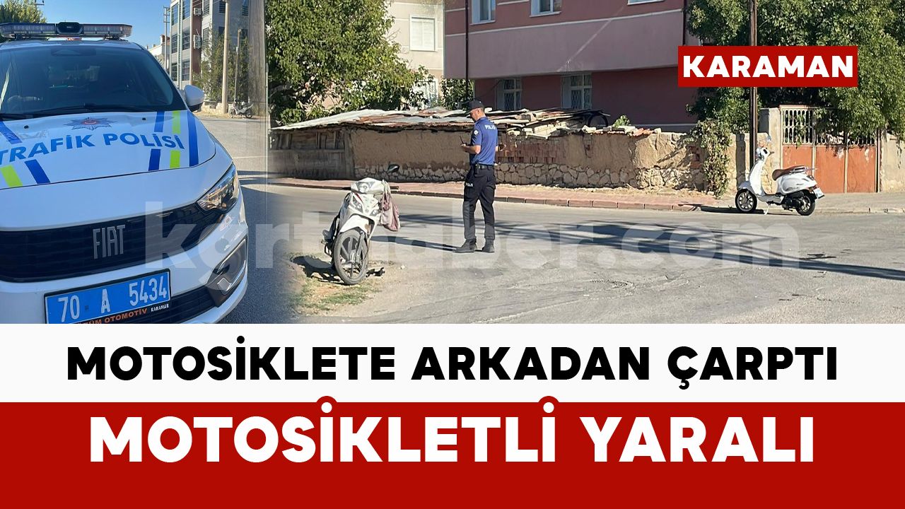 Kaza, ikindi saatlerinde, Hisar Mahallesi Şehit Muhammet Ali Mevlüt Dündar Caddesi’nde meydana geldi. Edinilen bilgiye göre, sürücüsünün ismi öğrenilemeyen 70 A*Z 0*8 plakalı motosiklet seyir halindeki B.L. yönetimindeki 70 A*R 8*4 plakalı motosiklete arkadan çarptı. Çarpmanın etkisiyle savrulan 70 A*Z 0*8 plakalı motosikletin sürücüsü yaralandı. İhbar üzerine kaza yerine sağlık ve polis ekipleri sevk edildi. Kazada yaralanan sürücü ambulansla Karaman Eğitim ve Araştırma Hastanesi’ne kaldırılarak tedavi altına alındı. Kazayla ilgili tahkikat başlatıldı.