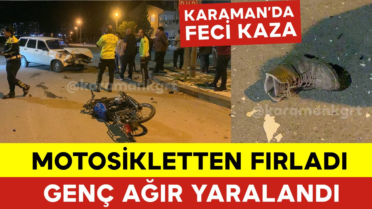 Karaman’da akşam saat 20.00 sıralarında Şeyh Edebali Mahallesi Yavuz Sultan Selim Bulvarı’nda meydana gelen kazada iddiaya göre, Yavuz Sultan Selim Bulvarı’nda seyir halinde olan 42 YT 685 plakalı motosiklet ile Milli Müdafaa Caddesi’nden 1739. Sokağa seyir halinde olan T.O. idaresindeki 42 BZC 29 plakalı otomobil bulvar üzerinde çarpıştı. Çarpışmanın etkisiyle genç motosiklet sürücüsü motosikletten fırlayarak önce ağaca daha sonra da çöp konteynerine çarparak ağır yaralandı. İhbar üzerine olay yerine sağlık ve polis ekipleri sevk edildi. Kazada yaralanan genç motosiklet sürücüsü olay yerinde yapılan müdahale sonrasında Karaman Eğitim ve Araştırma Hastanesi’ne kaldırıldı. Kazaya karışan araçlar çekici vasıtasıyla yoldan kaldırılırken polis kazayla ilgili soruşturma başlattı.