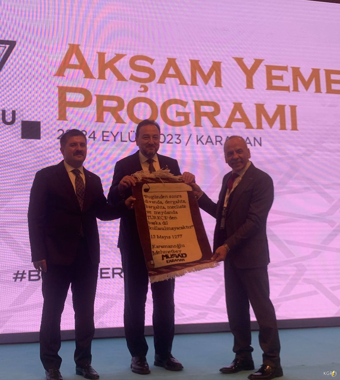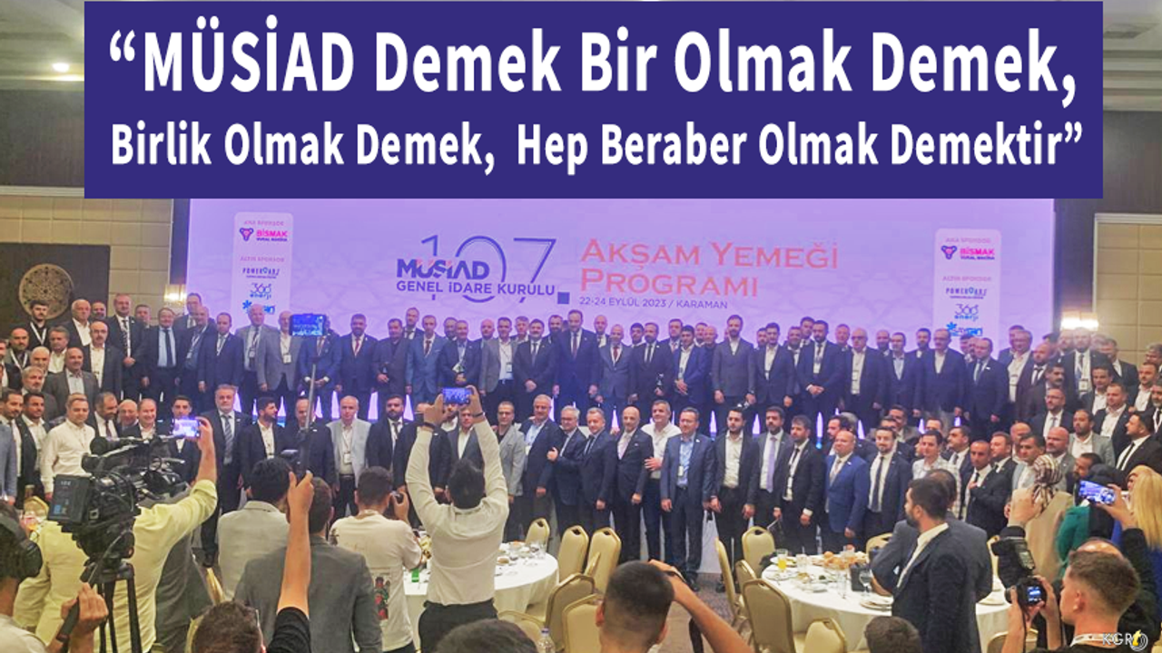 MÜSİAD Genel Başkanı Mahmut Asmalı, MÜSİAD Karaman Şube Başkanı Musa Akgül, Karaman Valisi Hüseyin Engin Sarıibrahim ve beraberindekilerin yüksek katılım sağladığı toplantı ve gala yemeği programı Salim Kılıçlarslan’ın Kur’an-ı Kerim tilavetiyle başladı ve yoğun programları nedeniyle programa katılamayan Cumhurbaşkanı Yardımcısı Cevdet Yılmaz ve Karaman Milletvekili Selman Oğuzhan Eser’in mesajlarının okunmasıyla devam etti. MÜSİAD’ın 2023 vizyonunu anlatan sinevizyonu ve Karaman MÜSİAD Şubesi’nin tanıtım filminin gösterime girdiği programda konuşan MÜSİAD Karaman Şube Başkanı Musa Akgül: “Yunus Emre’nin diyarı Türk dilinin başkenti elma cenneti kadim şehir Karamanımıza hoş geldiniz. Öncelikle genel merkezimizin takdiriyle bu önemli günde ev sahipliği yapma fırsatını bize sunduğu için genel başkanımız Mahmut Asmalı’ya ve ekibine MÜSİAD Karaman olarak teşekkür ederiz 107. MÜSİAD Genel İdare Kurulu toplantımıza tekrardan hoş geldiniz. Bugün burada MÜSİAD ailesi olarak büyük bir heyecan ve kararlılıkla bir araya geldik. Türkiye’nin dört bir yanından gelen bu değerli katılımcılarımızla ülkemizin ekonomik katkılarına katkı sağlama vizyonumuzu paylaşmak ve daha da güçlendirmek için bir aradayız. MÜSİAD olarak girişimciliği teşvik etmek iş dünyamızda sürdürülebilir büyümesine katkıda bulunmak ve üyelerimizin işlerini daha da ileriye taşımak için var gücümüzle çalışıyoruz bu amaç doğrultusunda bugün burada bir araya gelmemizin ve fikir alışverişinde bulunmamızın büyük bir önemi bulunmaktadır. MÜSİAD’ımızın geçmiş başarılarına ve tecrübelerine dayanarak gelecekte de Türk İş Dünyası’nın lider bir organizasyonu olarak Türkiye’nin üreten gücü sloganıyla yol almaya devam edeceğimize canı gönülden inanıyorum. Üyelerimizin işlerini büyütmelerine yeni projeler geliştirmelerine ve Türk ekonomisinin gücünü daha da arttırmak için burada toplanmış bulunmaktayız. Katılımcılarımızın katkılarıyla verimli ve başarılı bir şekilde geçmesini ve hayırlara vesile olmasını diliyorum. Hepinize ayrı ayrı teşekkür ediyorum.” dedi.