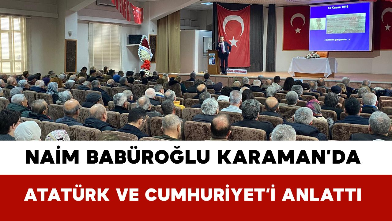 Programda konuşan Naim Babüroğlu, Karaman’ın Türk tarihi açısından taşıdığı öneme vurgu yaparak, Karaman’da bulunmaktan duyduğu memnuniyeti dile getirdi. Babüroğlu, “Karaman’ın Türk tarihinde çok özel bir yeri var. Bu şehirde olmaktan büyük mutluluk ve gurur duyuyorum. Şimdi sizlere tarihin kıskandığı bir lideri anlatacağım. O liderin köklerinde de Karaman’ın izleri vardır” ifadelerini kullanarak konuşmasına başladı.