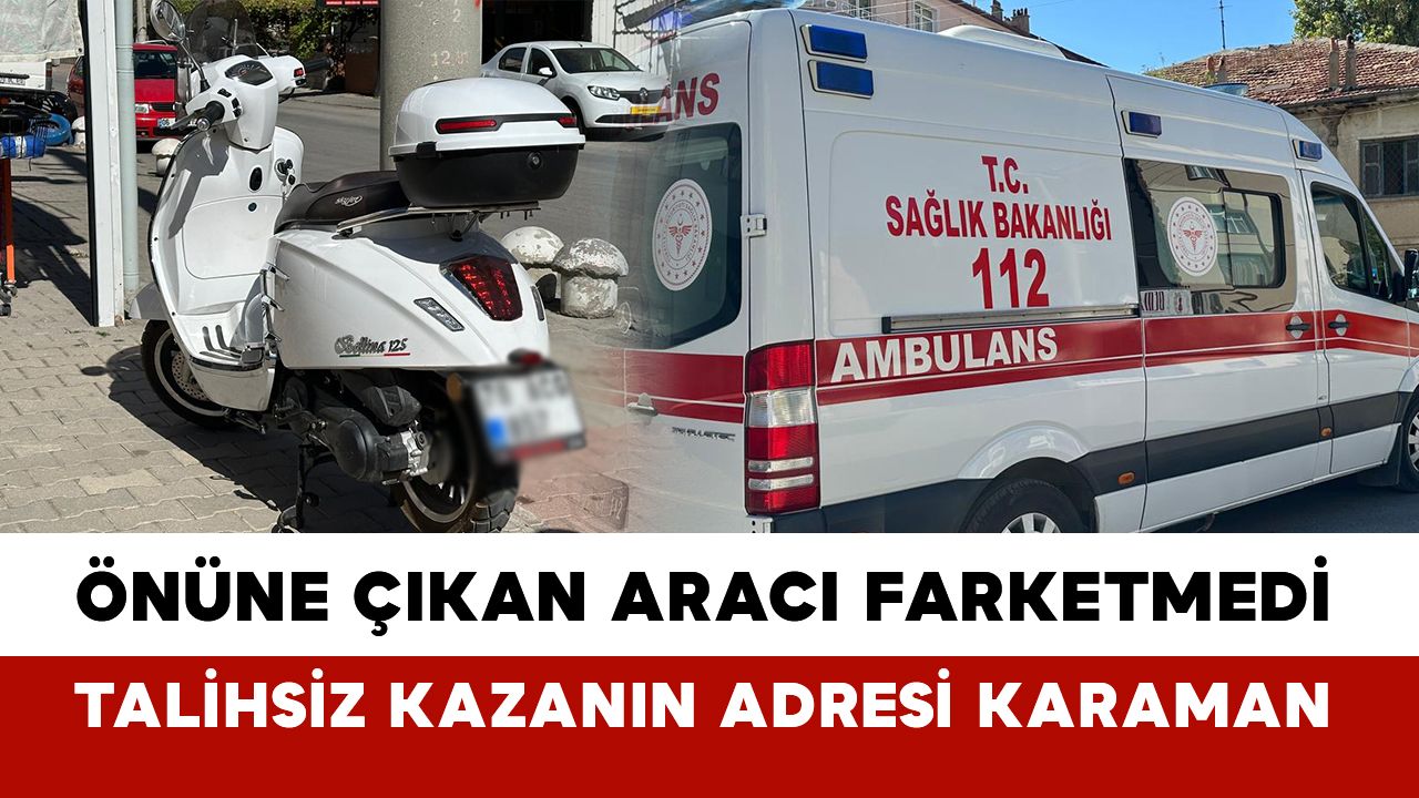 Olay, İmaret Mahallesi 380. sokak'ta meydana geldi. Edinilen bilgiye göre A.B. yönetimindeki motosiklet sürücüsü ara sokaktan çıkan otomobil sürücüsünü fark etmeyerek yere düşerek yaralandı. Olay yerine ihbar üzerine sağlık ve polis ekibi sevk edildi. Yaralı sürücü olay yerine gelen ambulans ile Karaman Eğitim ve Araştırma Hastanesi'ne sevk edildi.