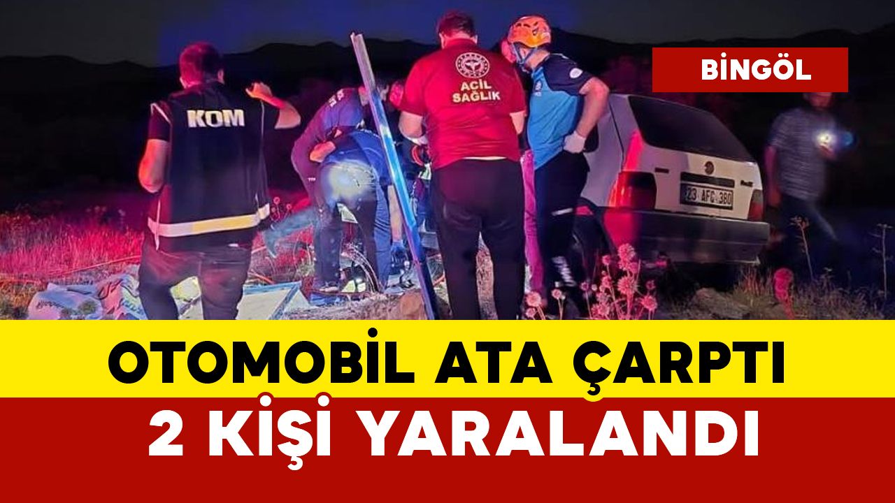 Kaza, Bingöl-Elazığ karayolu Yolçatı mevkiinde meydana geldi. Edinilen bilgiye göre, 23 AFC 380 plakalı otomobil, aniden yolan çıkan ata çarptı. Kazada, 2 kişi yaralanırken sürücü araç içerisinde sıkıştı. İhbar üzerine olay yerine UMKE, 112, itfaiye ve jandarma ekipleri sevk edildi. Sıkışan sürücü, ekiplerin müdahalesi ile araçtan çıkartıldı. Yaralılar ambulanslarla Bingöl Devlet Hastanesi’ne kaldırılarak tedavi altına alındı. Jandarma ekipleri olay yerine kazayla ilgili inceleme yaptı.