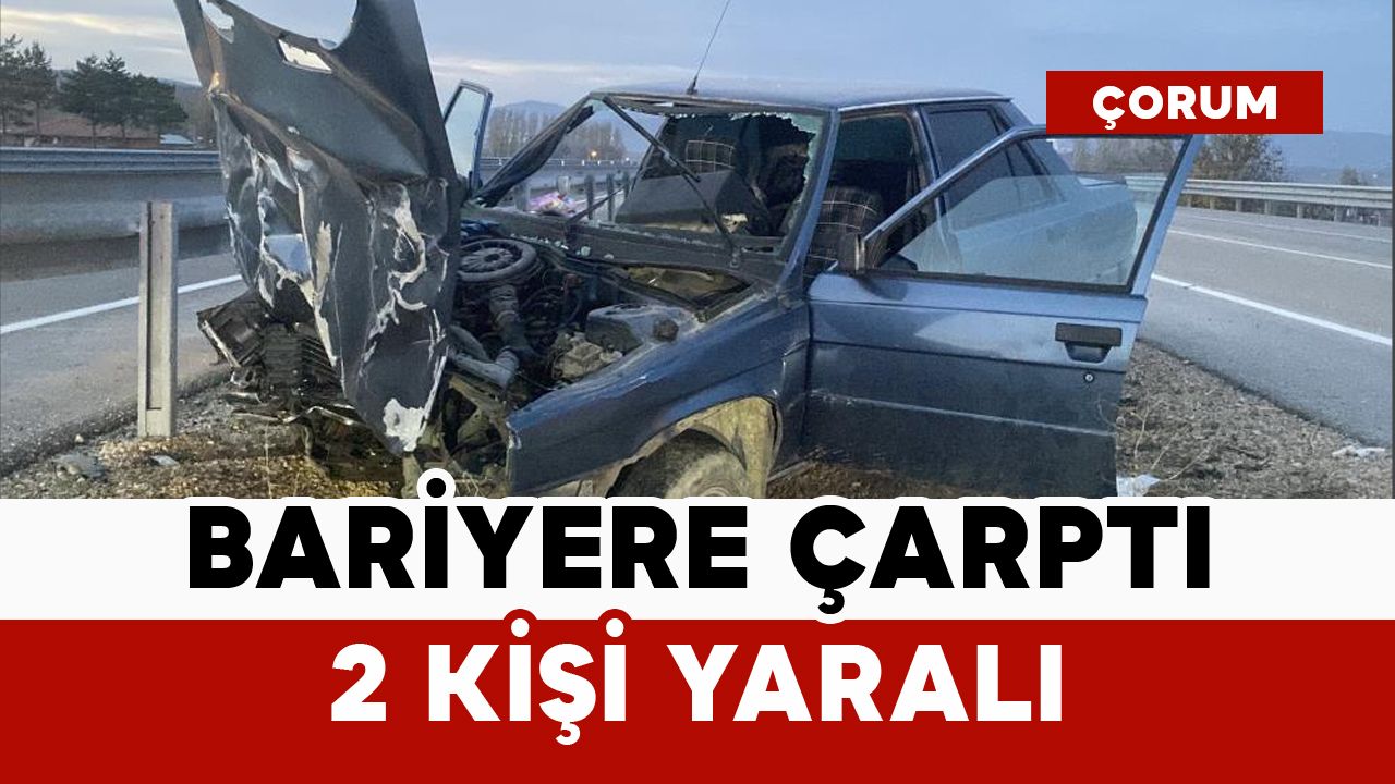 Kaza, Çorum-Amasya karayolu Elvan Çelebi Kavşağı mevkiinde meydana geldi. Edinilen bilgiye göre, Arap P. idaresindeki 06 R 7637 plakalı otomobil, sürücüsünün direksiyon hakimiyetini neticesinde bariyerlere çarptı. Kazada sürücüsü ile araçta yolcu olarak bulunan Yurdagül D. yaralandı. Kazayı gören çevredeki vatandaşların ihbarı üzerine bölgeye sağlık, polis ve jandarma ekipleri sevk edildi. Yaralılar, sağlık ekiplerince olay yerinde yapılan ilk müdahalenin ardından ambulanslarla Hitit Üniversitesi Erol Olçok Eğitim ve Araştırma Hastanesi'ne kaldırıldı.