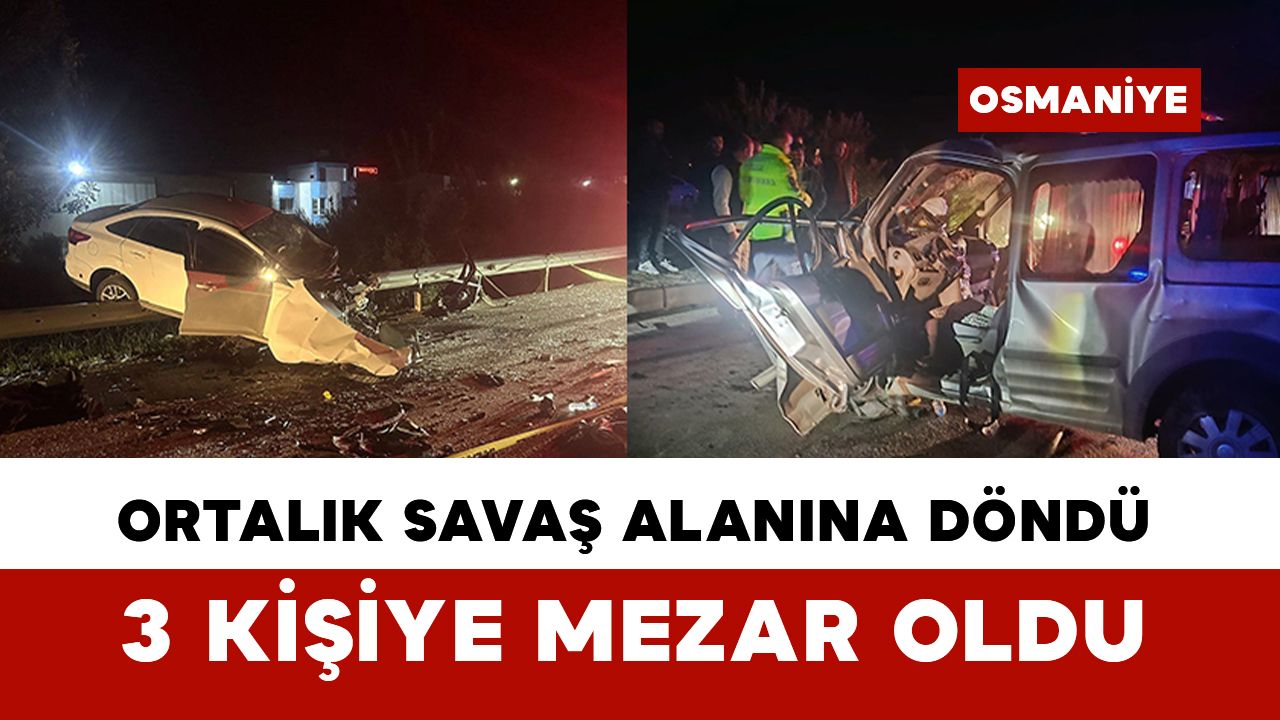 Kaza, Osmaniye merkeze bağlı Kayalı köyü mevkisinde meydana geldi. Edinilen bilgiye göre, Osmaniye’den Gaziantep istikametine seyreden 80 DM 178 plakalı hafif ticari araç, sürücüsünün direksiyon hakimiyetini kaybetmesi sonucu refüjü aşarak karşı şeride geçti. Araç, karşı yönden gelen S.K.K. yönetimindeki 80 AIB 231 plakalı otomobille çarpıştı. İhbar üzerine olay yerine itfaiye, sağlık ve jandarma ekipleri sevk edildi. Kazada otomobilde bulunan Süleyman Körkü (26) ile eşi Sevda Körkü (26) ve hafif ticari araçta bulunan Mehmet Toy (77) hayatını kaybederken, 2 kişi de yaralandı. İtfaiye ekipleri, araçlarda sıkışan yaralıları titiz bir çalışmayla kurtararak sağlık ekiplerine teslim etti. Yaralılar, olay yerinde yapılan ilk müdahalenin ardından ambulanslarla Osmaniye Devlet Hastanesi’ne kaldırıldı.