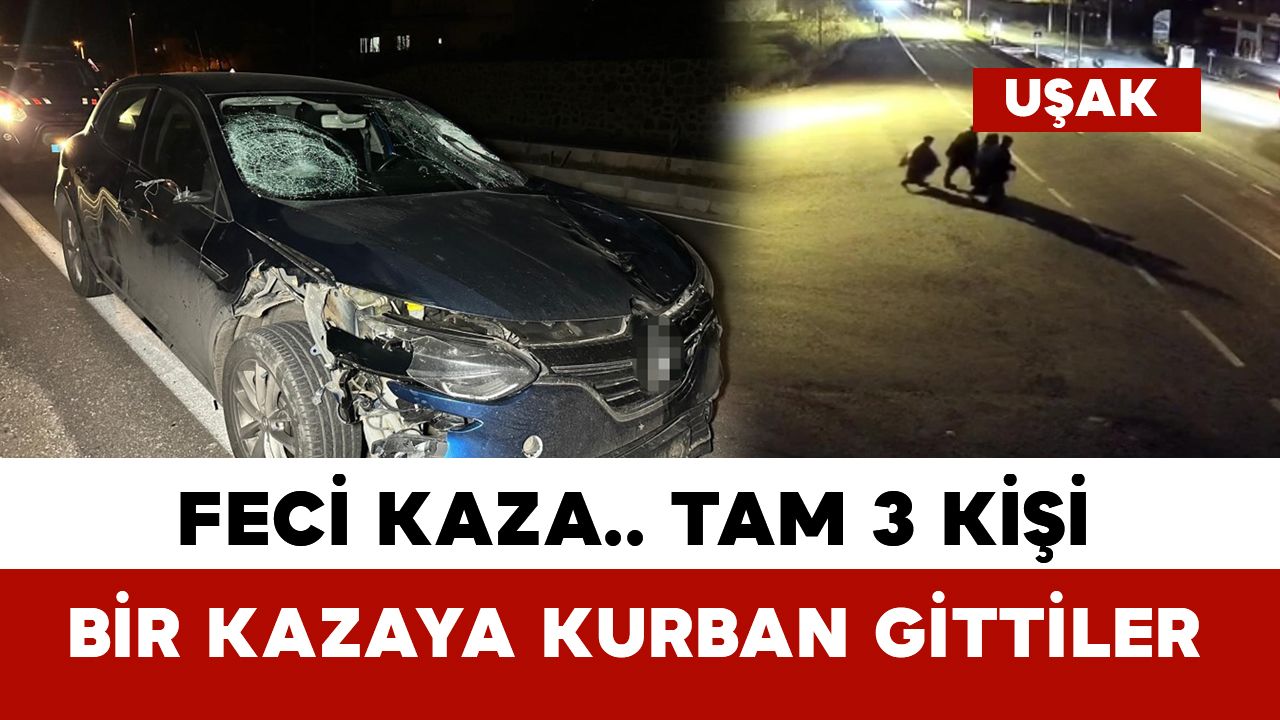Öte yandan, kaza anı güvenlik kamerasına yansıdı. Görüntülerde, Eşme istikametinden Uşak istikametine ilerleyen otomobilin, köy yakınlarına geldiği sırada karşıdan karşıya geçen 4 yayadan 3’üne çarptığı ve yayaların savrulduğu anlar yer aldı.