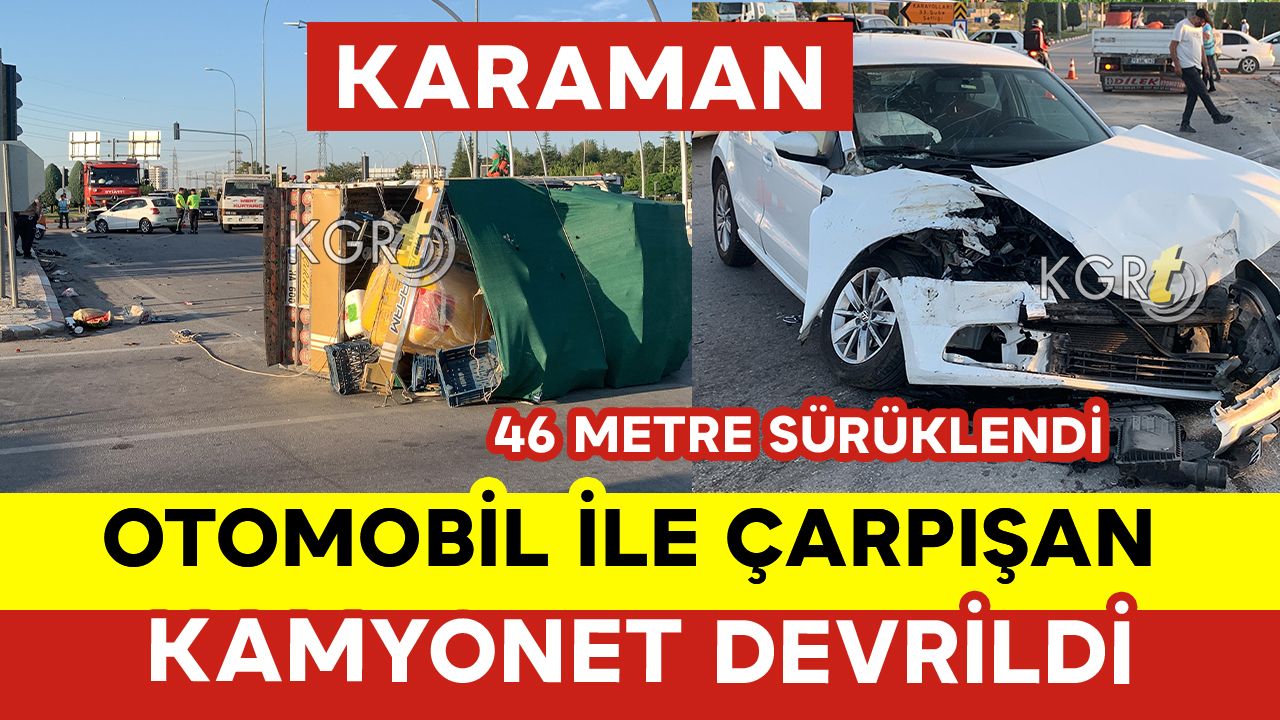 Kaza, saat 19.00 sıralarında Atatürk Mahallesi otogar kavşağında meydana geldi. Edinilen bilgiye göre, kavşaktan geçmekte olan S.Ç. idaresindeki 06 FP 3186 plakalı Volkswagen marka otomobil ile 100. Yıl Bulvarı’nda seyir halinde olan R.E. yönetimindeki 70 HA 600 plakalı kamyonet kavşakta çarpıştı. Çarpışmanın etkisiyle kamyonet devrilerek yaklaşık 46 metre sürüklendi. Kazada otomobilin sürücüsü S.Ç. yaralanırken kamyonetin sürücüsü kazayı yara almadan atlattı. İhbar üzerine olay yerine sağlık, itfaiye ve polis ekipleri sevk edildi. Kazada yaralanan otomobil sürücüsü S.Ç. ambulansla Karaman Eğitim ve Araştırma Hastanesi’ne kaldırılarak tedavi altına alındı. Kaza sebebiyle trafik yoğunluğunun yaşandığı kavşakta polis güvenlik önlemi aldı. Kazaya karışan araçlar çekici ile yoldan kaldırıldı. Kazayla ilgili tahkikat başlatıldı.