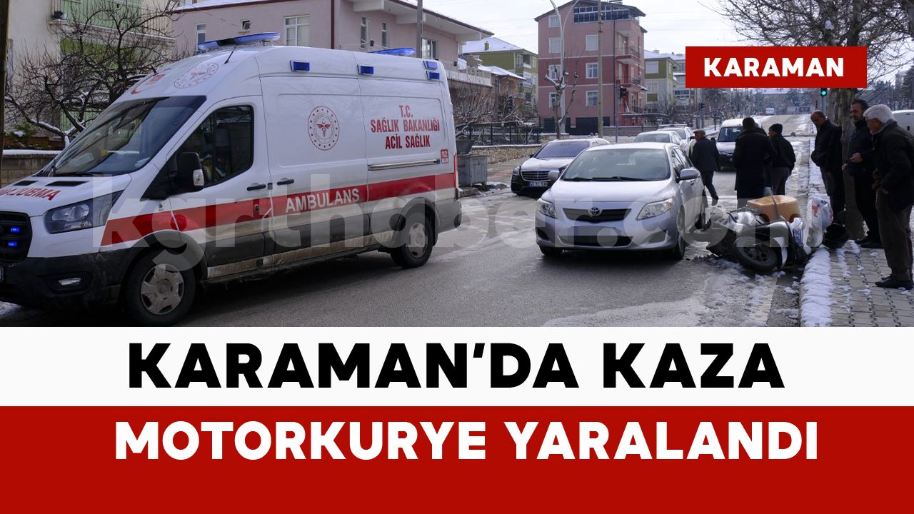 Kaza, saat 11.30 sıralarında Zembilli Ali Efendi Mahallesi Şehit Şahin Mavi Caddesi üzerinde meydana geldi. Edinilen bilgiye göre, İ.S. idaresindeki 70 A*M 9*8 plakalı motokurye ile sürücüsünün ismi öğrenilemeyen 70 E* 3*4 plakalı Toyota marka otomobil çarpıştı. Çarpışmanın etkisiyle devrilen motosikletin sürücüsü yaralandı. İhbar üzerine kaza yerine sağlık ve polis ekipleri sevk edildi. Kazada yaralanan motokurye ambulansla Karaman Eğitim ve Araştırma Hastanesi’ne kaldırılarak tedavi altına alındı. Kazayla ilgili tahkikat başlatıldı.