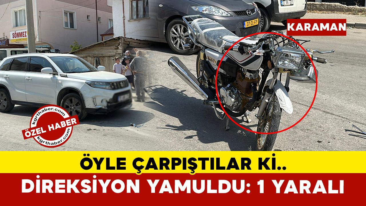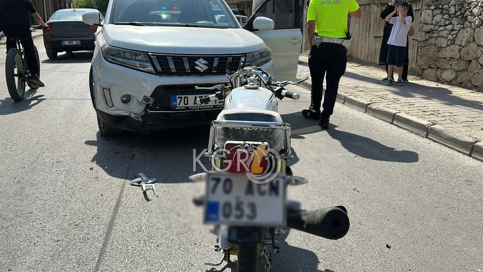 Çarpışmanın etkisiyle 70 A** 0** plakalı motosikletin sürücüsü yere düşerek yaralandı. İhbar üzerine olay yerine sağlık ve polis ekipleri sevk edildi. Yaralı sürücü M.B., sağlık ekiplerinin olay yerinde yaptığı ilk müdahalenin ardından ambulansla Karaman Eğitim ve Araştırma Hastanesi’ne kaldırılarak tedavi altına alındı.