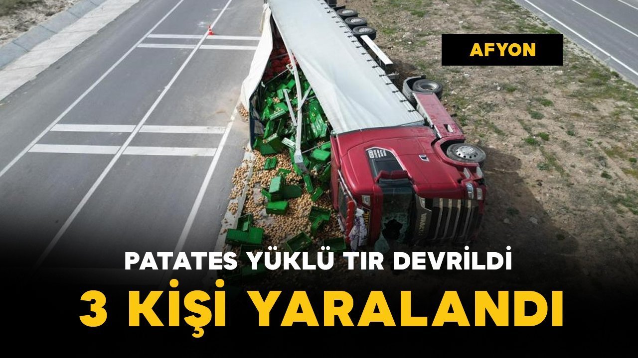 Kaza, Bolvadin ilçesi OSB Kavşağı’nda meydana geldi. Edinilen bilgilere göre, A.K., idaresindeki 42 V 4800 plakalı patates yüklü tır sürücüsünün henüz belirlenemeyen bir sebepten ötürü direksiyon hakimiyetini kaybetmesi sonucu kontrolden çıkarak refüje devrildi. Kazada sürücü ile birlikte K.K. ve M.E., yaralandı. Yaralılar kaza sonrası çevredekilerin haber vermesi üzerine olay yerine gelen ambulanslarla hastanelere kaldırıldı. Büyük çapta maddi hasarın meydana geldiği kazada, tırın dorsesinde kasalar içinde taşınan tonlarca patates ise çevreye dağıldı.