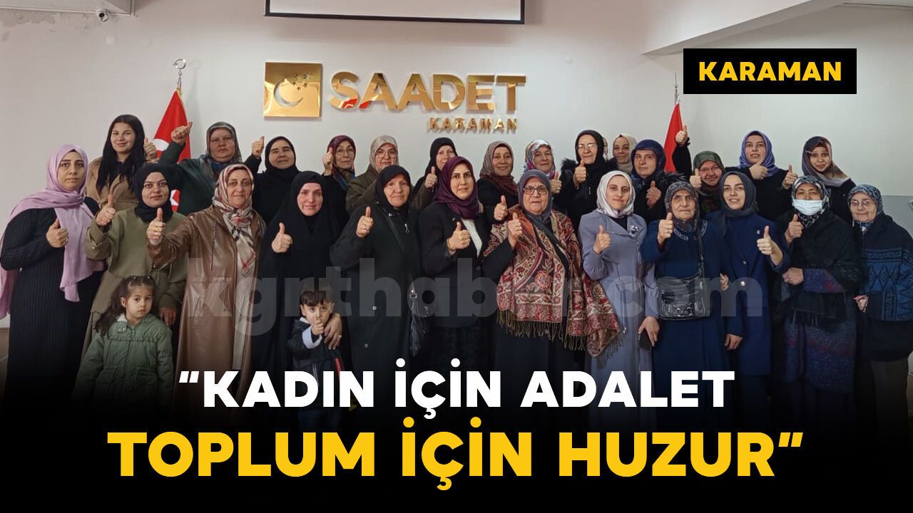 Saadet Partisi Bölge Başkanı Fatma Kara ve Karaman Kadın Kolları Başkanı Kadriye Tunç’un çarpıcı açıklamalarla damga vurduğu programda, kadına yönelik şiddet, ekonomik güvencesizlik ve küresel zulümlere karşı kararlılık mesajları verildi.