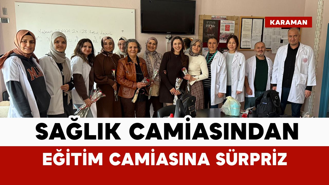 Karamanoğlu Mehmetbey Mahallesi’nde hizmet veren 6 Nolu Aile Sağlığı Merkezi’nin doktor ve hemşireleri, 24 Kasım Öğretmenler Günü dolayısıyla Karaman Fatih Anadolu Lisesi öğretmenlerine anlamlı bir sürpriz gerçekleştirdi.