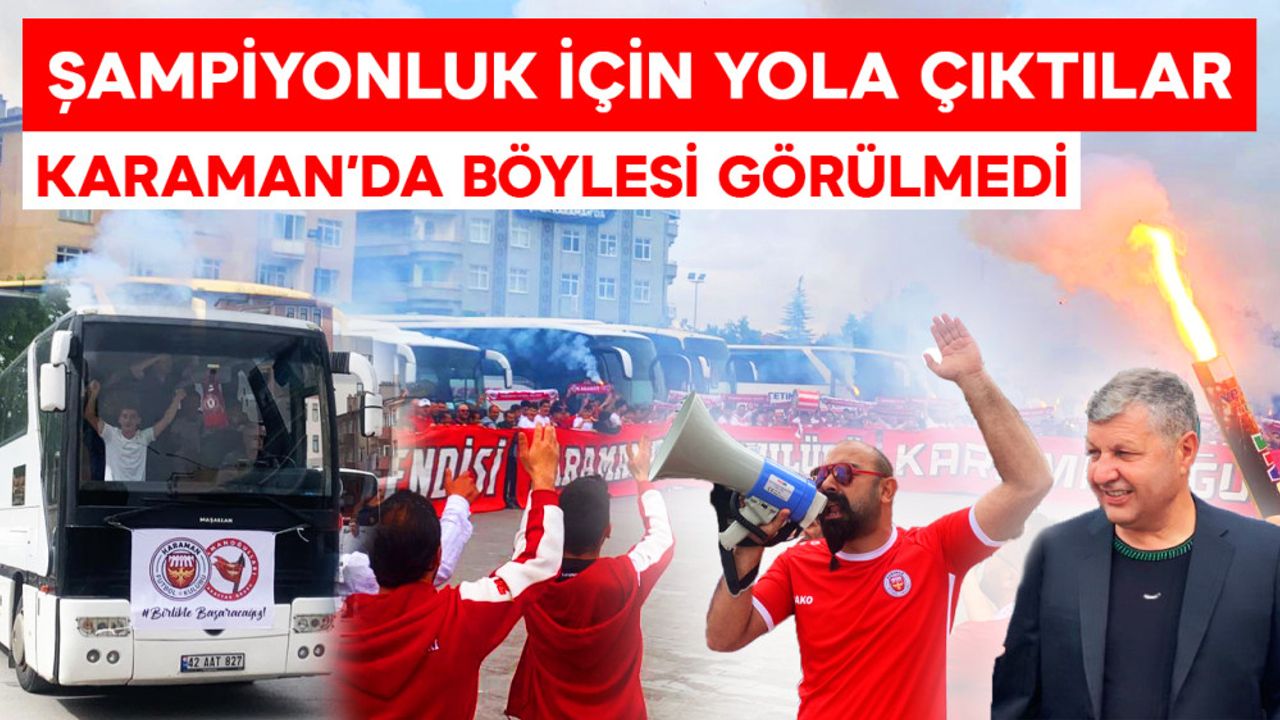 Karaman FK taraftarları, kırmızı beyaz formalarıyla güvenlik önlemleri alındıktan ve üst aramaları yapıldıktan sonra Ankara Etimesgut Eryaman Stadyumu'na doğru yola çıkacak otobüslere alındı. Aktekke Meydanı'nda meşaleler ve pankartlar eşliğinde yola çıkan taraftar otobüsleri, Karaman'ı temsil etmek için Ankara'ya hareket ettiler.
