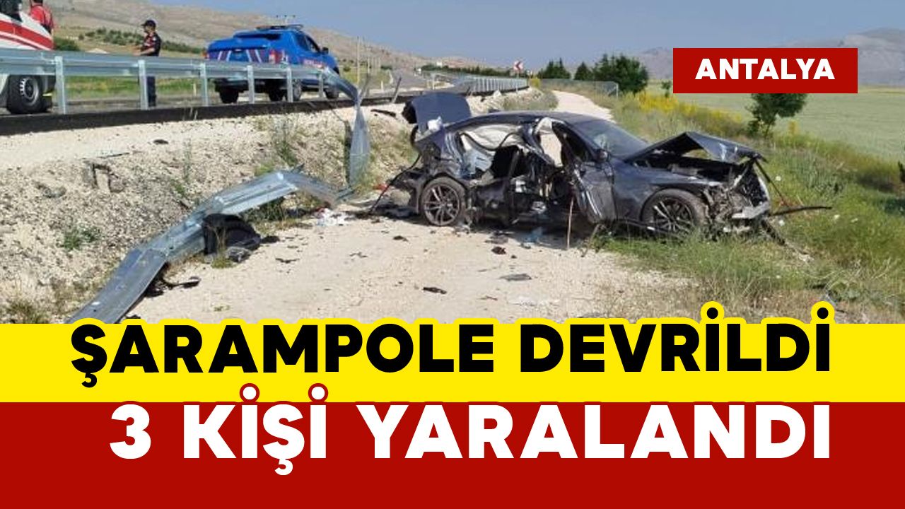 Kaza saat 10.00 sıralarında Antalya'nın Korkuteli ilçesi Antalya- Denizli Karayolu üzerinde meydana geldi. Edinilen bilgilere göre Antalya'dan Denizli istikametine seyir halinde olan Yusuf E.(45) idaresindeki 06 TB 412 plakalı BMW marka lüks otomobil sürücüsünün direksiyon hakimiyetini kaybetmesi sonucu kontrolden çıkarak bariyerleri aşıp şarampole devrildi. Kazada sürücü Yusuf E., ve araçta yolcu olarak bulunan Birol D.(59) ve Salih Ş.(41) araçta sıkışarak yaralandı. Çevredekilerin 112 Acil Çağrı Merkezi'ne ihbarı üzerine olay yerine itfaiye, sağlık ve jandarma ekipleri sevk edildi. Olay yerine gelen itfaiye ekipleri tarafından araçtan çıkarılan yaralılar sağlık ekiplerinin ilk müdahalesinin ardından ambulanslar ile Korkuteli Devlet Hastanesi'ne kaldırıldı. Yaralıların durumlarının iyi olduğu öğrenilirken kaza ile ilgili inceleme başlatıldı.