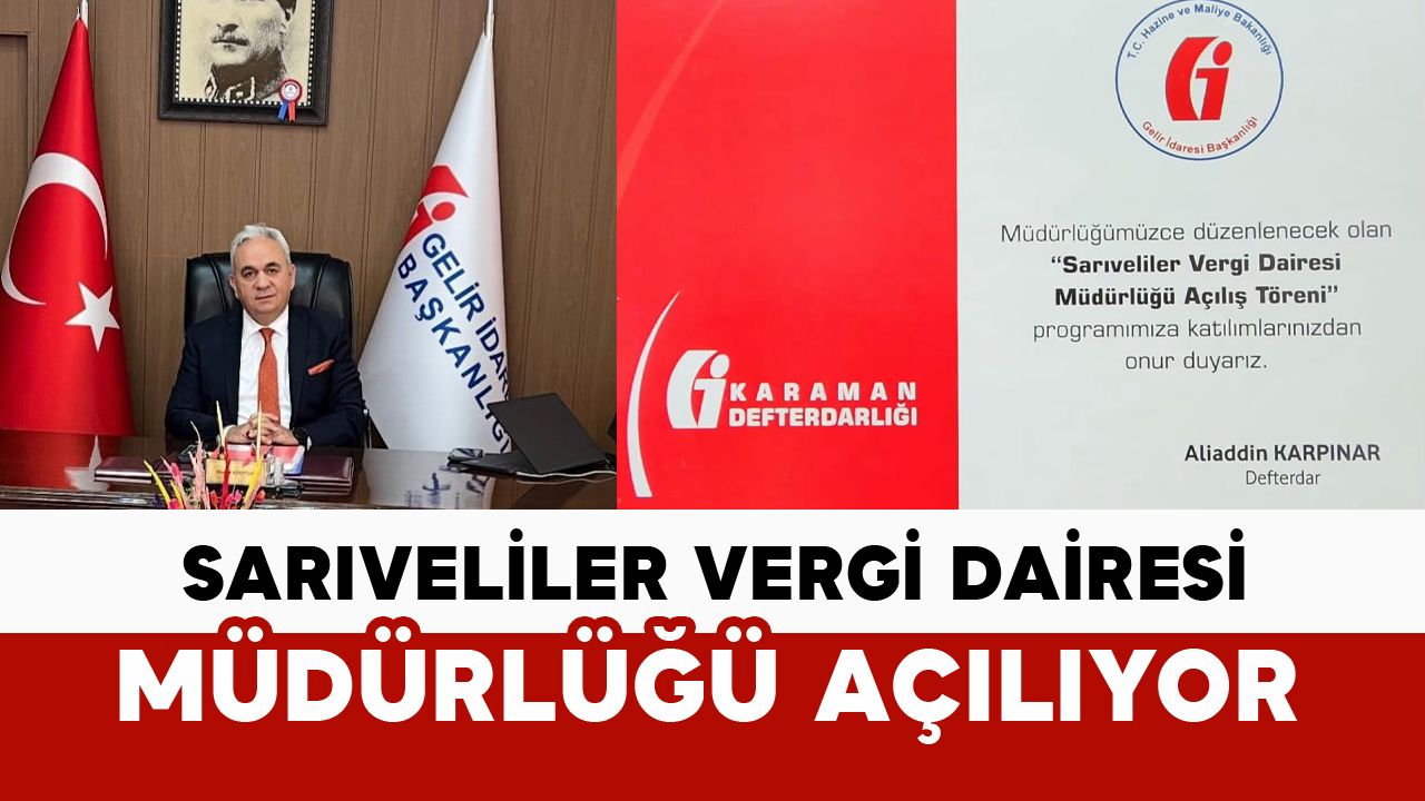 Müdürlük binasında düzenlenecek olan Açılış Töreni ile yeni hizmet binası faaliyete geçmiş olacak. T.C. Hazine ve Maliye Bakanlığı Gelir İdaresi Başkanlığı'na bağlı olarak hizmet verecek olan Sarıveliler Vergi Dairesi'nin açılış programına, bölge halkının ve tüm ilgililerin katılımı bekleniyor.